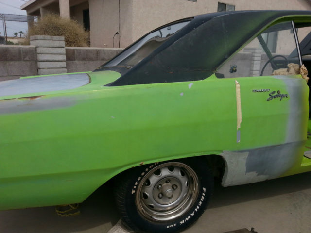 Here is my 1970 Dodge Dart 340 Swinger "PROJECT" back on E-Bay. I had a lot of questions that I could not answer and a lot of photos I needed to take. As I had stated in my last ad I had purchased this car for parts. Specifically the rear end. I figured I would pull it out of the car and sell what parts I could then chuck the rest. When I got the car I discovered a couple of things. It was a original "H" code car with a center console auto shifter and a 8 3/4 posi rear end with 3:91 gear ratio. Car was also sublime green with black bucket seats. This car must have terrorized Some town in Minnesota which I believe is where it came from. Unfortunately the streets where not kind to this car. However I believe this car is worth saving and it is my hope someone will agree with me. The Vin and body numbers match, title is clean but no Vin tag in the engine compartment. I am fairly certain it is green as there is green behind the dash frame which is still on the car. actually it's everywhere. When I went back to do a more detailed photo shoot of the car I discovered many parts that people had asked about but I did not know where there. I did not find a build sheet behind the glove box because there was no glove box, wish I had. Take a look at the photos which will give you a pretty good idea of its condition. Any questions which I may or may not be able to answer e-mail and I will try to answer. No motor but do have trans and of course the rear end still in the car. thanks for looking and hopefully someone can save this car. She must have been a beauty when she was new. P.S I have a set (Shown in Photos) 1971 Bucket seats. Buy it now price will include the seats. Will sell car for 3,000.00 without the seats. So if you don't need the seats cheaper price.