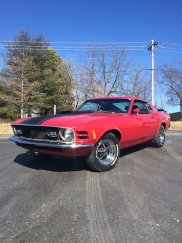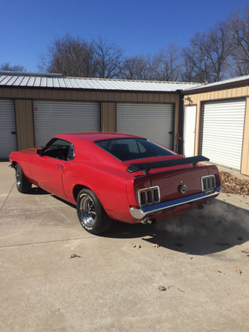 Restored 1970 Mustang Sportsroof, very solid and reliable driver.  Drivetrain:  Very strong running, rebuilt 351 with Edelbrock aluminum intake. Freshly rebuilt C4 automatic transmission coupled to a 9" Ford rear end with 3.50 T-Lok gear set. Dual Mach 1 style exhaust. Car has factory power steering and aftermarket air conditioning.   Body/Exterior:  Very straight, solid car, repair and repaint was done by the owner of a local body shop as this was his personal car. Paint is Ford Candyapple Red with Mach 1 style hood striping. 15" Magnum 500 wheels with radial tires. All new bumpers, nice trim and rear deck spoiler.  Interior:  Deluxe Black Interior with high back bucket seats and center console and fold-down rear seat. Aftermarket steering wheel and stereo. Odometer shows 84,140 miles.  Terms of Purchase:  Vehicles is sold as-is, where is with no warranty expressed or implied. The car is for sale locally and I reserve the right to end the auction at any time.  $500 non-refundable deposit due at time of winning bid. Remainder of balance due within 7 business days. Acceptable methods of payment are Cash (in person), cashiers check or certified funds or bank wire transfer. The vehicle is located in a climate controlled storage facility in Cape Giradeau, MO. It is available for inspection by appointment. Buyer is responsible for shipping. I can help you arrange shipping, INTERNATIONAL BUYERS ARE WELCOME.
