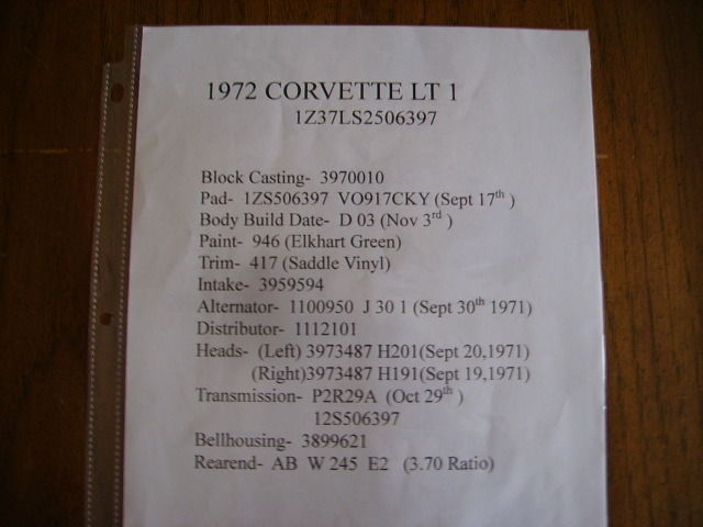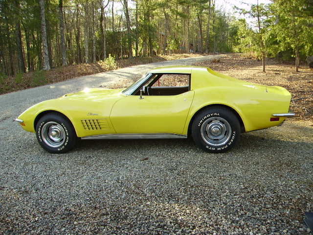 This 1972 LT1 Corvette is equipped with the correct 350/255 hp engine, 4 speed transmission, 3.70 posi rearend and radio. It has new paint, new carpet, new seat covers, new carb, new door weatherstripping, new sill plates, newer exhaust. and newer brakes. It is documented with the tank sticker and also has the original owner's manual, key envelope and jack door stickers. To the best of my knowledge, it has the matching number engine, transmission, heads, intake, alternator, distributor and rearend. It has a very nicely detailed engine compartment and undercarriage. It does have the spare tire carrier, spare tire and jack. It appears to have a no-hit body and excellent frame. The original shifter and linkage come with the car. The headlight doors, wiper door, interior lights, turn signals, horns, radio and brake lights work properly. The job number "430", is visible on the floor pan as well as penciled in on the build sheet. The last 3 numbers of the VIN are also penciled in on the build sheet. This is a very nice driver quality car. The state of Georgia does not issue a title on a car that is 25 years old or older. This Corvette is being sold on a current registration in my name and a bill of sale. I can be reached at 706-838-0166. Inspections are welcomed.