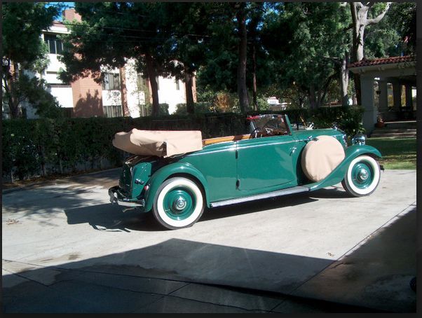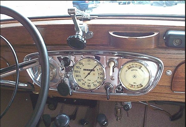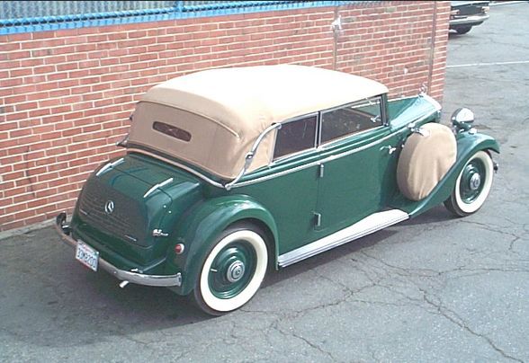 The restoration still shows very well, with obvious care given since. The exterior, finished in a lovely emerald green, exhibits minor buffing marks from cleaning, but it still presents very well. This Cabriolet rides on painted steel wheels that are finished in emerald green are shod in Firestone Deluxe Champion whitewall tires. The engine is finished in a semi-gloss green, and the ancillary components, such as wiring, radiator hoses, copper tubing, and the air cleaner, have been appropriately renewed or detailed. The chassis displays a black semi-gloss finish. In addition, many of the driveline components appear to have been treated to a cleaning or paint detailing at the time of the restoration, and they still present well.  The interior displays well, with new brown leather seats and a complementing new beige custom fitted carpet with brown leather trims. The plethora of rich wooden trim is beautifully refinished and exhibits no apparent blemishes. The integral rear boot is finished in black carpet, and it is equipped with two levels of shelving, with trays for storage, and also stores the convertible top boot. This is a handsome pre-war Mercedes Cabriolet that could be shown with some minor detailing or enjoyed as a top-down tourer by its new owner.