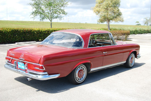 We are proud to offer this beautiful unrestored 1965 Mercedes Benz 220SE Coupe survivor for sale. Finished in Ruby Red exterior and Black MB-Tex interior, this car is a perfect candidate for a full restoration or just enjoy it as a driver. Odometer shows 47,470 miles but being a 5 digit odometer we don't know the actual miles. Engine is an inline 6cyl and 2195 cm3 in running condition but may need new valve seals. Transmission is a 4 speed automatic in good working condition. Wheels are 14" steel with mercedes hubcaps wearing new white wall Uniroyal 185/70-14 tires. Black carpet all in great condition. The dash is in good condition, wood needs refinishing but it's all complete. This is a clean, no rust, no visible accidents, very solid and straight car. Paint is good with a couple of scratches as shown in the pics. At some point the car was Ivory which I believe is the original color. Car is in running and driving. We have set the reserve well below hagerty.com values ($39k). Please call us to see the car @ 305 300-9010. We are a small classic car dealer in South Florida. Car is sold as is. We encourage bidders to come and inspect the car. Buyer is responsible for transportation, but we can help with shipping arrangements. A $1000 non-refundable deposit is required through Paypal within 24 hours of auction ending. Balance should be completed within 7 calendar days of auction ending by wire transfer or cash in person.