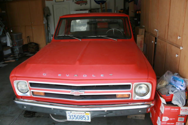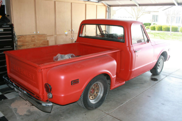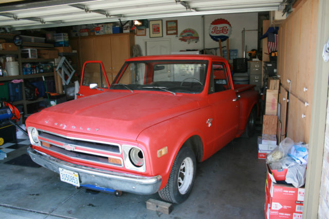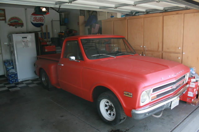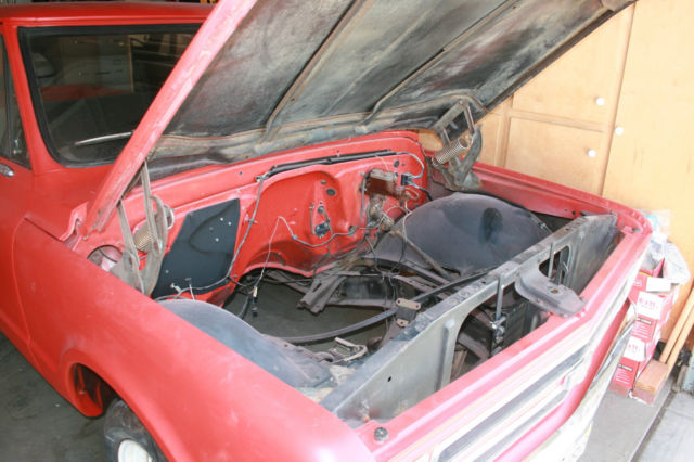 1 968 Chevrolet / Chevy step-side short wheelbase pickup with big back window In my opinion, this truck is an excellent start to build a nice truck. I bought it to build, but my health interfered with my plans. There is NO ENGINE OR TRANSMISSION in the car. I do not have the heater controls. I have a rebuildable 350 small block if the price reaches the reserve. NO RADIATOR Clear California title currently registered. Very nice body. No visible rust in rockers or floors. Appears to have very minor rust in right rear cab corner. No rust in the drip rails. Has had hole cut in floor for automatic shifter. The radio opening appears to be slightly enlarged. Seat is in good usable condition. Recent instrument cluster face and new tachometer and guages. The speedometer is new or rebuilt and reset to zero. The true mileage is not known. Recent die cast carpet edge moldings. Insulation installed on floor. All good glass. Doors have had speaker holes cut. It has new reproduction inner fender panels. Includes a complete 1985 Chevrolet pickup front suspension (to convert to better suspension / ball joints / disc brakes and five lugs) I also have a set of four factory Chevrolet pickup rally wheels with hubcaps but WITHOUT BEAUTY RINGS. Both the front end and the rear end in the truck have lowering springs and aftermarket sway bars. The title is clear and is in my name and the truck is currently registered. The bed has had a piece of diamond plate bolted down. I have not removed it to inspect the bed. Please review the pictures carefully and write or call with any questions before bidding. This is a used vehicle and is sold as is and where is. There are no guarantees either express or implied. No Trades. Please do not ask. You may call me with any questions from 8am-8pm California time. 916-606-6594. The truck is for sale locally and I reserve the right to end the auction early.