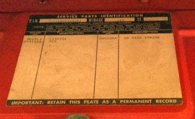 | VIN (Vehicle Identification Number): | CS148164202 | Year: | 1968 |
