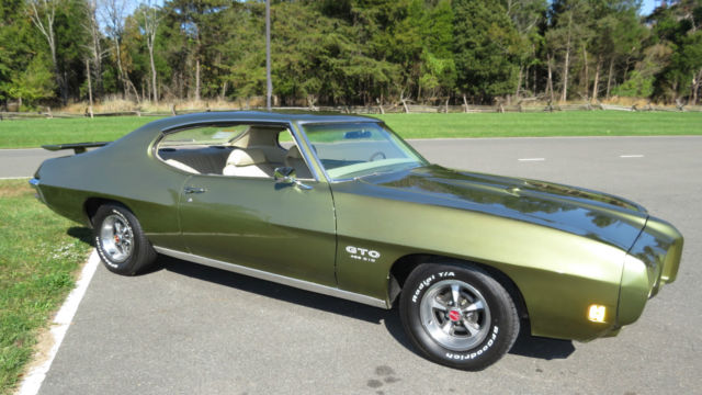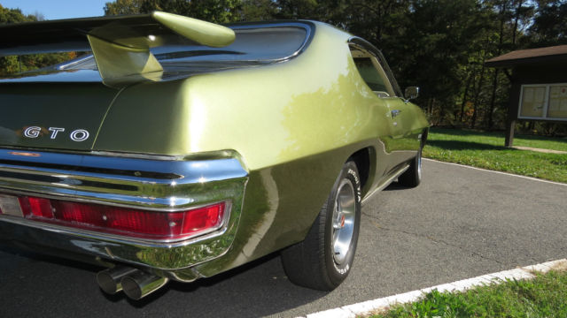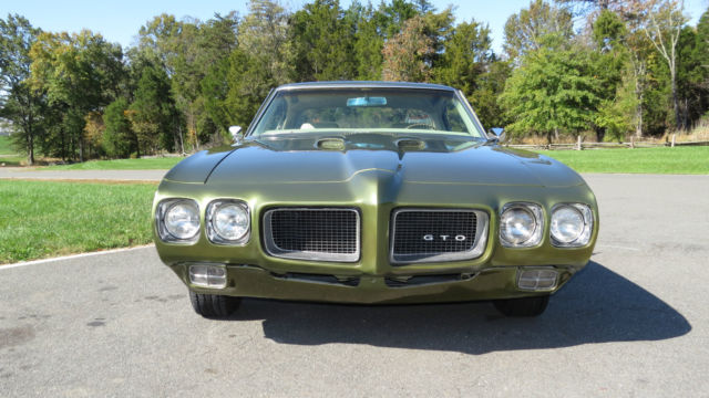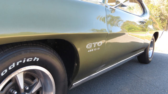 1970 Pontiac GTO 455 HO Numbers matching and comes with build sheet and 1970 owners manual. Rare color combo: Verdoro green with Sandalwood interior. 455 HO motor, purrs and pulls hard. New 4 core radiator, heater core and hoses. Factory flex fan. Original variable ratio PS. TH400 auto transmission shifts perfect. Very streetable original 3.07 gear ratio 12 bolt posi rear end. Rally II wheels. Factory Front disk PB. Factory rear sway bar and boxed rear control arms. 4 new BFG radial TA tires. Rear spoiler. Brand new rear bumper. New Weather stripping. Bucket seats with console shifter. Factory original Deluxe/ Sport Steering wheel. Rally Gauges. New idler arm and center link. new rear brake lines. Real YA block indicating 70 455 auto. block casting # matches the VIN to this car. Transmission and rear end matched to this car as original. Engine was gone over by original owner, but no documentation. you can tell it the engine is good, by the way it starts right up, idles beautifully (not a tick!) and pulls hard! The only issues are that the park brake is frozen and the headliner is new, but could use some tightening. This is not a rotisserie restoration, but u nderside of the car is in good shape. This is priced to sell as the price indicates for a #'s matching car that runs and drives beautifully. See video of the car at: link