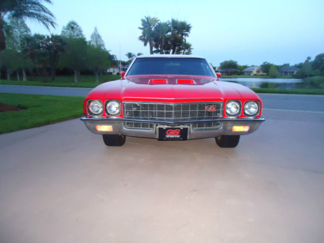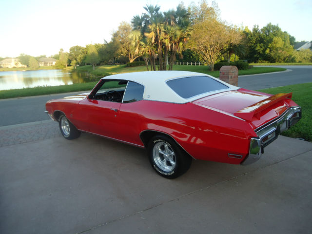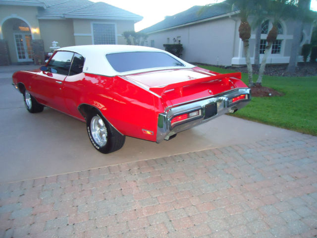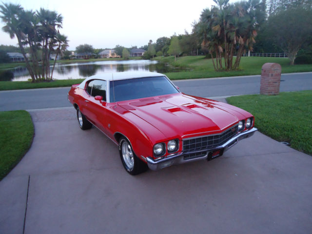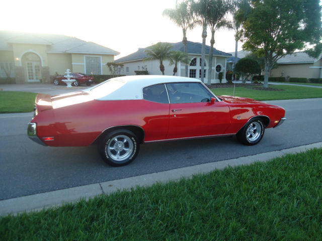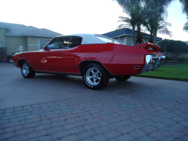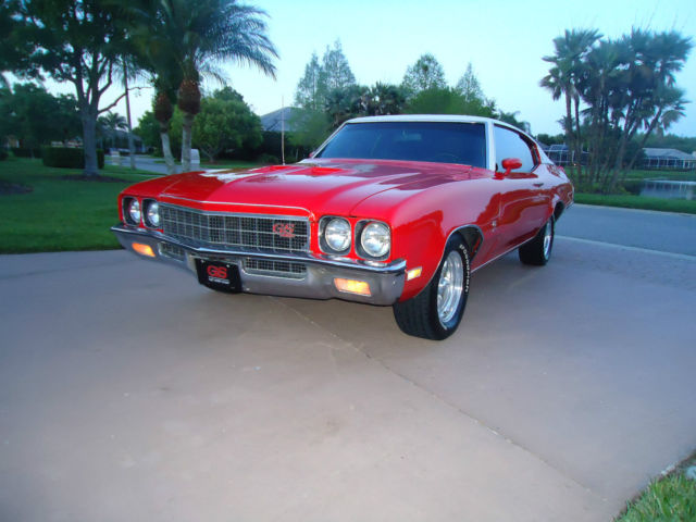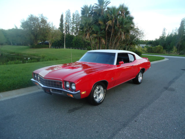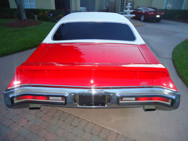 GORGEOUS 1972 BUICK SKYLARK 350 CLONE -- THIS CAR IS IN ABSOLUTLY BEAUTIFUL CONDITION -- THIS IS A VERY RARE CAR - HARD TO FIND LIKE THIS ONE - THIS IS A GREAT COLLECTOR CAR !! THIS CAR IS READY TO GO - GREAT PAINT ON THIS CAR HAS A GREAT GLOSSY SHINE ( SEE PICS ) AMAZING BODY , NO DENTS, AND THE INTERIOR IS JUST AMAZING - BUCKET SEATS, FLOOR SHIFT CONSOLE , NEW HEADLINER, NO FADING OR NO CRACKS IN THE VINYL , THIS CAR HAS THE TACH AND GAUGES , THE ENGINE COMPARTMENT IS SUPER NICE AND CLEAN THE TRUNK IS CLEAN AS CAN BE , THE UNDERSIDE IS NICE AND CLEAN, THE REAR SPOLIER STES THE WHOLE CAR OFF - NOT TO MENTION THE BEAUTIFUL COLOR COMBINATION - BRIGHT RED WITH BLACK INTERIOR AND A WHITE TOP - VERY VERY PRETTY CAR !! AND BEST OF ALL ICE COLD A/C THAT WORKS GREAT , THIS CAR DRIVES LIKE A DREAM FIRES RIGHT UP EVERY TIME, I WOULD NOT HESITATE TO DRIVE THIS CAR ANYWHERE ! A PURE PLEASURE TO DRIVE ! NEW STEREO SYSTEM /C/D PLAYER , NICE THRUST WHEELS, LIKE NEW TIRES, ALL WHEEL CYLINDERS WERE REPLACED, NEW VINYL TOP, DUAL ELECTRIC FANS , NEW REAR SPRINGS , ALSO HEI DISTRIBUTOR AND NEW PLUG WIRES, 12 BOLT POSI, THIS IS NOT A PERFECT CAR - BUT A VERY NICE CAR - IT WILL BE HARD TO FIND ANOTHER ONE LIKE THIS ONE -- THIS IS A GREAT CAR TO HAVE FOR AN INVESTMENT AND A GREAT CAR TO TAKE TO SHOWS OR JUST TO HAVE TO DRIVE AND ENJOY , AND BEST OF ALL DELIVERED RIGHT TO YOUR DOOR ! THIS CAR IS AVAILABLE TO VIEW AND INSPECT ANYTIME BEFORE PURCHASE, EVEN BRING YOUR MECHANIC I ENCOURAGE IT , LIKE ALL CLASSIC CARS THIS CAR IS SOLD AS IS - NO WARRANTY ON NOTHING AT ALL - THE PAPERWORK WILL BE RAN THROUGH A DEALER, AFTER PAYMENT IS MADE IT USUALLY TAKES ANYWHERE FROM 3-12 DAYS FOR DELIVERY DEPENDING ON YOUR LOCATION , YOU WILL LOVE THIS CAR !!