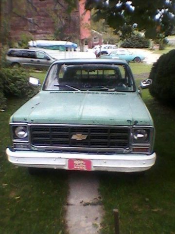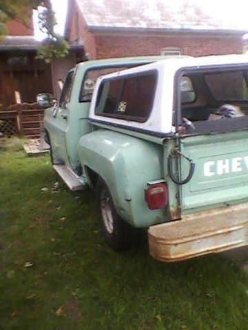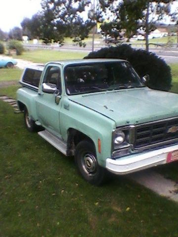 1979 Chevrolet C10 Stepside step side Pickup Truck      With cap        Rat Rod ratrod  This truck has the usual rust for the 73-81 pickups fenders, cab corners, rockers, rear fender flanges and steps bed pockets. It needs the turn signal switch fixed and tail pipe to pass Pa Safety inspection. Currently inspected till this summer.I quit driving this truck this past December after a hip replacement and will not be needing it in the future. I've had it since 2006 as my daily driver. I was side swiped in 2008 and the insurance company refused to fix it. I did it myself and put it back on the road with a reconstructed title. I since have driven it from Maryland to NY several times and Once to Florida. The wood is starting to go and the metal strips will need repaired or replaced in the bed. See photos. In addition to the truck you will receive a set of: New Rocker panels, New cab corners, Extra hood, Extra set of original doors without dents. another green dash, Another front fender without rust through. The truck mileage is truly unknown It's about 117000. I changed the rear in 2006 and the gear ratio makes the speedometer 10% slower than you are really going. It helped the gas mileage increase to 16-19 mpg.  Recent improvements include: New brakes and rear hubs. New Battery, new master cylinder and belts and filters.  Winning bidder to make a $500.00 deposit (via PayPal within 3 business days) with balance upon pick up. Buyer is to inspect and pay balance for the truck within 7 days of sale close unless other arrangements are made via eBay message system. This truck can be inspected by appointment locally and I reserve the right to end auction early because the truck is also for sale locally. I can drive this truck to load it for pickup through your carrier.