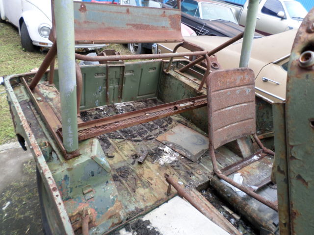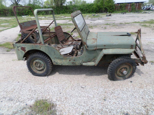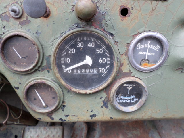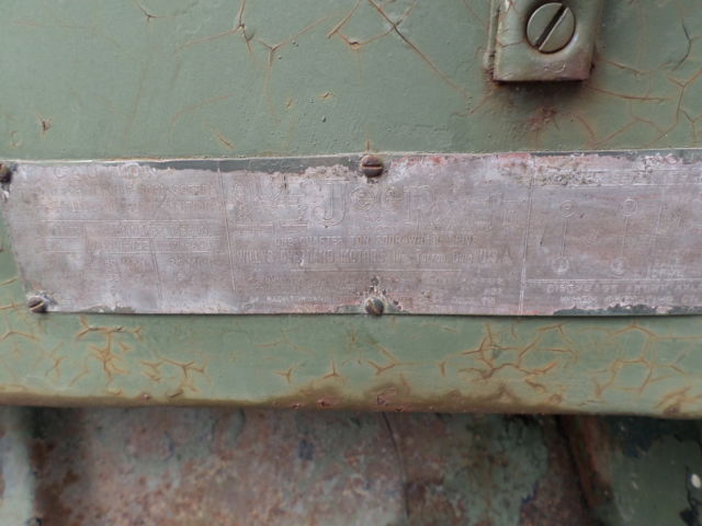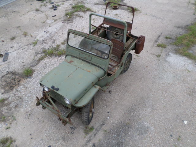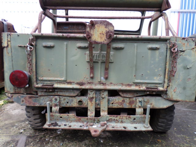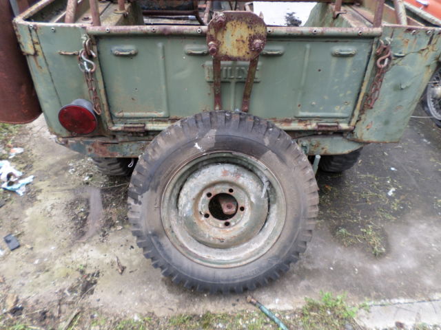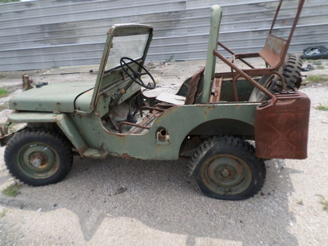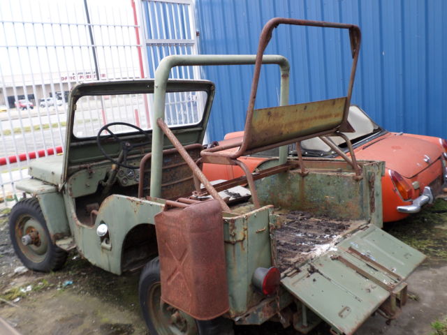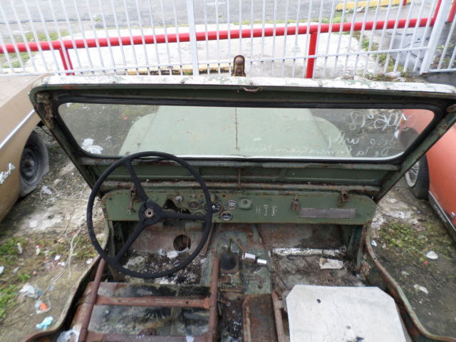 US ARMY JEEP Willys M38 1952, needs total restoration, still has original engine other components such as transmission, differentials all of the original components. In 1950, Willys introduced the M-38 (identified as an "MC" by Willys), a post-WWII Jeep based on the CJ-3A and fitted will military-specific features, including a one-piece foldable windshield, bottom-mounted wipers, a pintle hook for towing, lifting shackles, and a fuel filler on the drivers side. Pioneer tools (axe and shovel) were mounted on the passenger side, and larger tires were used (7:00x16) along with a waterproof electrical system, requiring a second battery. The M38 suspension and frame were stronger than that of its civilian sibling (the CJ-3A) and had a full-floating rear axle. Other distinctive features of the M38 include protruding headlights (with guard wires in front), an air vent in the base of the windshield, blackout lights and notches for various tools. The M38 did not have an outside step (included on the CJ-3A ), in order to improve ground clearance. A few M38s were equipped with Ramsey winches (with a net weight of 2,745 lbs). Other M38s were outfitted with wading equipment and a special breathing apparatus to allow for fording in streams. A few M38 jeeps were set up for light dozing and leveling (although a find like this would be rare) with hydraulically-controlled blades. Winterization packages for the M38 included a hard top, all metal enclosure. "The instrument panel of the M38 was an exercise in simplicity, just as its predecessors had been. The instruments were clustered in the center with external lighting, with the dataplates to their right, and a glove box at the extreme right. To the left were the choke and throttle, with the light switch just left of the steering column, and at the far left the parking brake handle was mounted in the dashboard." The M38 continued in production until 1952, when the M38-A1 became the âstandardâ model of military service, until it went out of production in 1957.