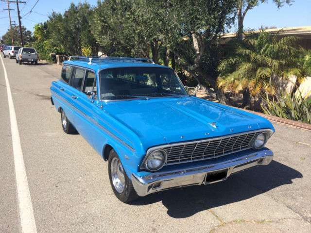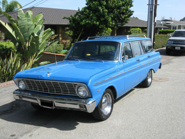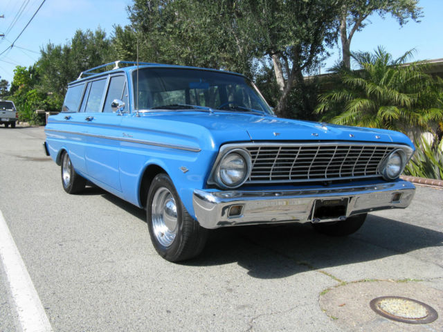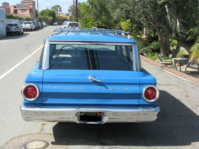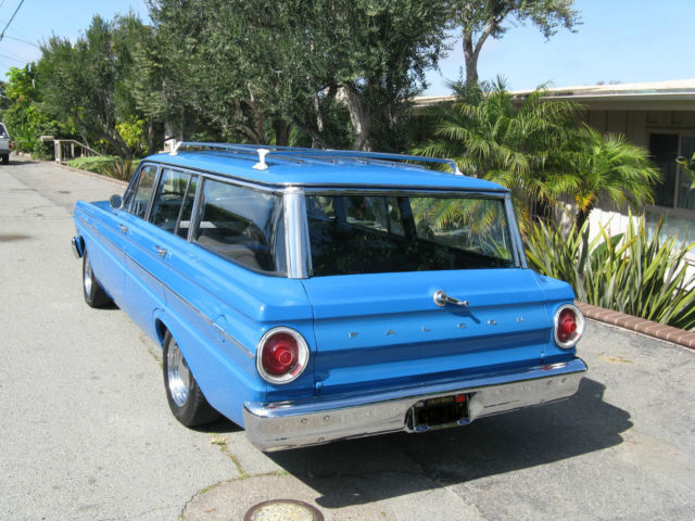 New: paint, radiator, water pump, coil springs, air conditioning, power steering Strong 5.0L (302ci) motor with under 25k miles, Edelbrock 4bbl, C4 automatic trans, FlowMaster Exhaust Body in perfect condition except for rust underneath the spare tire wheel well. Paint fairly new with a few very small chips around the hood area that need touch-up. Interior is bench seats with custom two-tone upholstery in good condition. Padded dash. New Vintage Air air-conditioning; aluminum radiator, rear leaf springs, Flaming River power steering. 60's era authentic luggage racks. This vehicle is not in original condition. It is a fun daily driver / classic surf vehicle the way it is, or a great foundation for a show car. You cannot drive this car without people giving you thumbs up or stopping you to tell you how they grew up in their family's Falcon Wagon. It gets lots of attention. It is only being sold, very regretfully, because I have too many projects for my small shop area. The vehicle is in North County San Diego. Please email with your phone number if you're interested. I'll return all (legitimate) inquiries. NO BUYERS WITH ZERO TRANSACTIONS! ALL BID RETRACTIONS REPORTED TO EBAY. SERIOUS BUYERS ONLY.