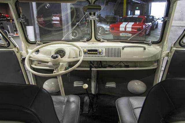 Mint, showroom Condition! this 1967 VW Bus has been completely restored inside and out, no expense spared. The floor has been replaced This is an original California vehicle from New Port beach, all work was done by qualified VW specialist repair shops, complete with Roof top carrier and running board, all body panels a straight and flawless the high luster velvet green paint has an amazing shine, there are no dents, dings or scratches. This bus is in exceptional condition, attention to detail in all aspects have been covered allowing no disappointments, the 1967 VW Bus series was one of the lowest manufactured and is in great demand worldwide, there is no other work needed to be done, it has taken first place at many VW car shows. Recent work in the last 3 years include: original Classic style look bluetooth stereo, with ipod cable connection 6x9 3 way alpine speakers boxed and mounted cleverly and professionally under rear seat, narrowed front stock beam / new disc brakes,gear reduction boxes removed narrowed tie rods, new brake hoses, heat exchanger heater box, heater box levers, heater cable, heater box air hose, fuel pump, vacuum hoses, all new bulbs for entire vehicle, fuel filter, drop spindles, spark plugs, trailing arm seal, brake fluid reservoir, brake light switch, shifter bushing kit, Safari wiper pivots, electronic ignition module, distributor, new exhaust and muffler tune up 5 month old oil and filter change as I stated previously, nothing more is needed showroom condition here is a video link of the engine running https://www.dropbox.com/s/143xbyss8iofgk9/2014-12-06%2018.19.56.mov?dl=0 Here is a link for more pictures of the bus: https://www.dropbox.com/sh/px760mtlt35sifc/AABf5if5FOrfgl19bD0dG_hLa?dl=0 This vehicle is also being offered for sale locally please contact me directly if you have any questions regarding any aspects of this bus 204 798 2302