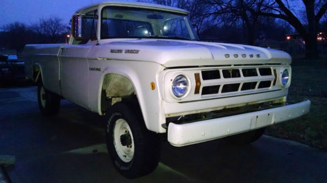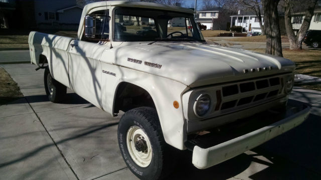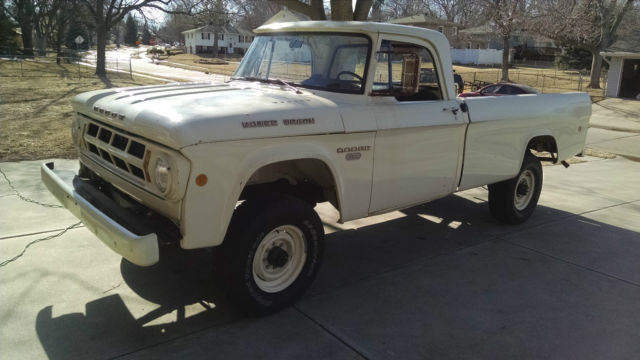 This is a very clean and complete truck. This is an original 318, 4 speed, 4x4, 4.10:1 Dana truck. It was originally delivered to Oklahoma City, but made it to Arkansas. The body is very clean, the cab, box, and rockers have had repairs from what appears to be a very old restoration / repaint. The body itself is nearly rust free. The floor boards have been repaired but they are very solid. The underside is unrestored and in good condition for its age. It will need some rust repaired at the fender and cab mounts behind the front wheels. The truck drives like a 1968 3/4 ton Dodge 4x4. It is a lot of fun to drive, (if your kidneys are up for the challenge). It starts easily, idles smooth, runs, and shifts very well, and has good power, (no smoke or leaks). The transfer case and diffs are in good working order and functions correctly. The transfer case shifts smoothly but the linkage has some slop. It is very tight when locked in. It has a new battery, plugs, wires, points, cap and rotor. Someone along the way put a aluminum 4 bbl manifold and a carter AFB on it. It does not have power steering, but it DOES have A/C that appears original or dealer add on. The belt is not hooked up, but the compressor turns smoothly. The exhaust is not brand new but very good and solid, true full length dual exhaust. Interior power and wiring is in good shape also.The head lights, tail lights, brake lights, signals, interior lights and blower all work. All in all this truck is in very good shape. I have put over 100 miles on it so far. It is a blast to drive and gets compliments wherever you go. However with that being said, it is not a restored truck, it is not a perfect truck. A Non-refundable $500.00 PayPal deposit due within 24 hours of buy it now or truck will be re-listed. Contact must be made immediately after purchase and arrangement to complete transaction can be made. Buyer is responsible for all shipping arrangements. The truck is located in Omaha, NE. I am not difficult to get along with, but I have grown tired of all the BS out there. I guess I'm getting old. If you understand that, we will get along fine.
