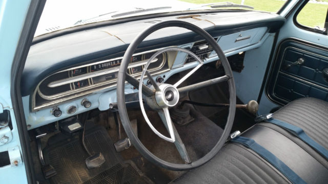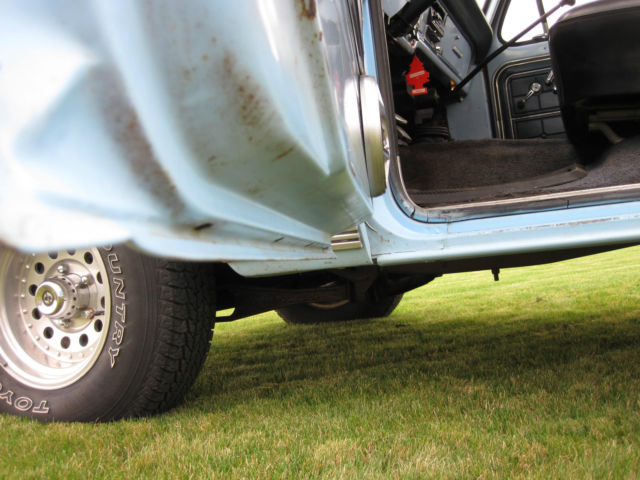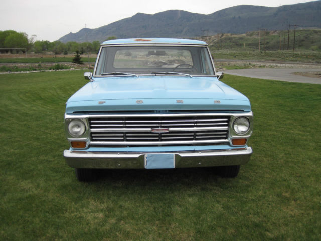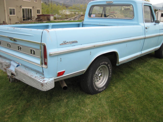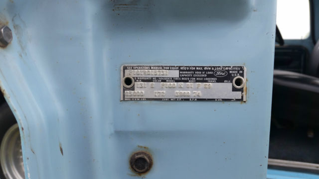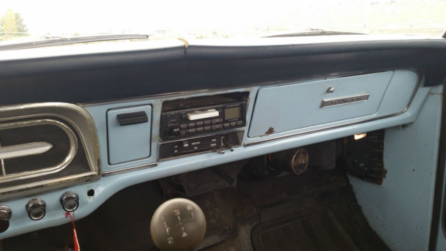 Grandpa's baby blue Ranger. This pickup runs great! It hasn't been driven much in the past 20 years.. The couple I purchased it from had owned it since the early 1980's I have receipts for the completely rebuilt 360. It was done in 1997 and as of today it has 4,574 mi. on it. I installed a new Holley 2bbl carburetor, 3' single exhaust with a very mellow Flo-Pro muffler. I also rebuilt the King pins. The original 4speed transmission functions well. The clutch feels good. The Toyo tires were installed in 1998 and have only 3,654 mi. on them. Despite they're age, they don't show any major signs of weather damage. The exterior was repainted in the mid 90's (poor quality) with the original color. It has great patina. The floor boards have some scaly rust, but no holes in them. The worst exterior rust is on the drivers door (see picture). This is just a great little pickup! It's mechanically sound...with a little help from it's new owner, the interior could be really sharp! It has a BEAUTIFUL Original 68 Ranger seat that I installed. The original blue seat was nowhere near as nice as this one. This is a long bed (8'). Actual mileage is uncertain, odometer reads 32,252. Please ask questions, I'm happy to take more pictures to present this as honestly as possible.