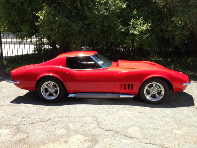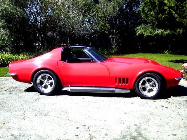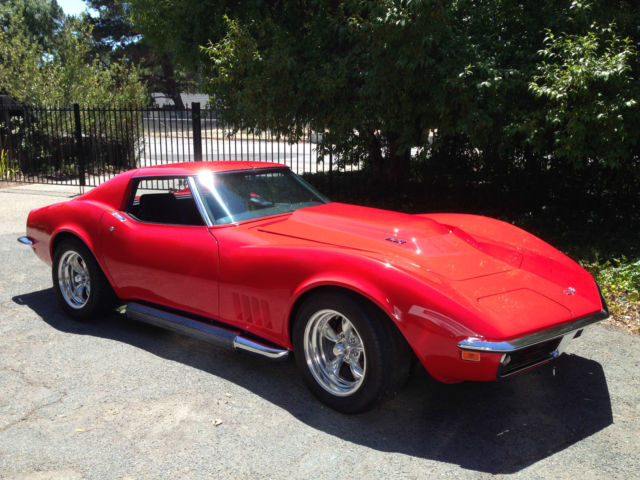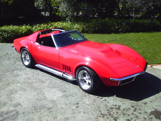 1969 Corvette L-71, T-Tops, VIN 194379S713779. Original engine stamp reads T0110LX. Original 427/435 hp, power steering, automatic TH400 transmission, rare auto. Complete frame-on restoration including red exterior, blk leather, engine, tranny, suspension, brakes, etc. Engine was totally gone through, with all the necessary machine work done, bored 30 over with 10 to 1 TRW forged pistons. Comp Cams solid lifter cam and lifters,springs ,keepers, retainers, pushrods and new Manley Stainless Valves. Crower Stainless roller rockers, new GM oil pan and oil pump as well. Original numbers matching engine and transmission with a B&M shift kit. Still has the numbers matching distributor and coil, as well as the original electronic ignition, which was present on all the 435 HP cars, I have been told. California car, rust free. I have owned the car for 18 years and as far as I have been able to find out, I am the second registered owner. Vacuum for headlights not hooked up. I will deduct $1000, the maximum amount necessary to have a shop repair it. I have all the original pieces with the exception of the rubber hose kit, which comes with instructions and costs @ $50, if you do this yourself. Asking $42000 or best offer