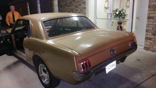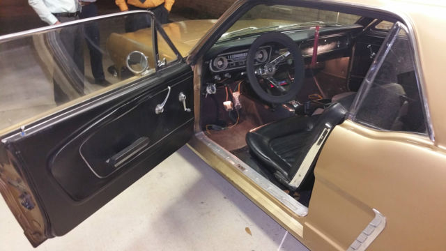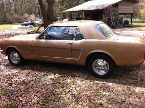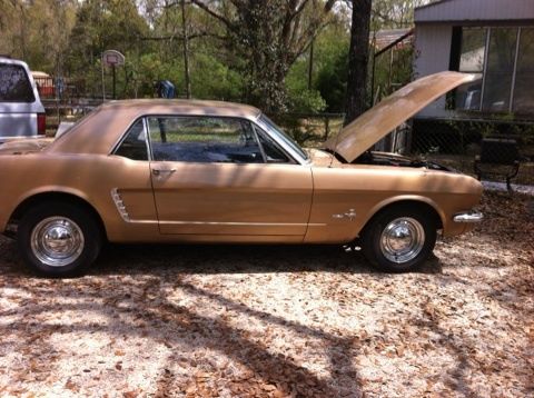 Great weekend cruiser in a gold "will need paint see pics" matching numbers 1965 Mustang Coupe boasting a modified inline 6 engine getting 20+ miles per Gallon. Black leather seats, automatic transmission, Also added new headers ,exhaust system and 14" chrome rims with new tires. Overall good condition but not perfect. With a little TLC, she could be a show car. No major mechanical issues. Always started even after sitting awhile. Only mechanical issues aware of is the timing needs to be readjusted, is advanced to get a little more fire. Very nice car, and great for someone who does not mind putting a little into her without putting a whole lot out. Car shows no signs of rust issues, and reason for paint problem is when car was painted they put too much hardener in the paint. Attached are a few pictures but I can provide more. WE DROPPED THE PRICE $1000,00 TO GO TOWARDS YOUR NEW PAINT JOB Maybe save even more and Make An OFFER !!!! or maybe watch someone else BUY IT NOW !!!! This Listing is for a friend so Please call him with all questions Anthony Lee 985-517-2196 car is forsale locally I can remove listing anytime