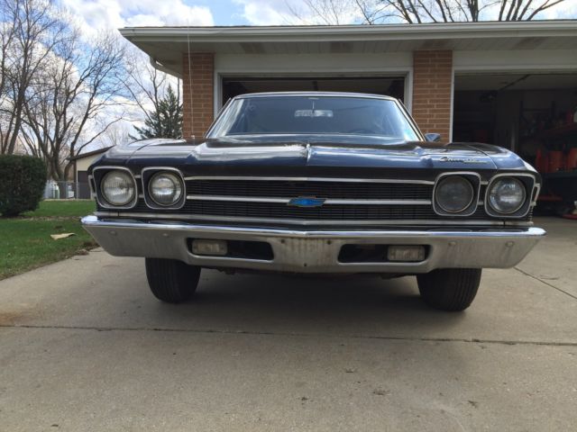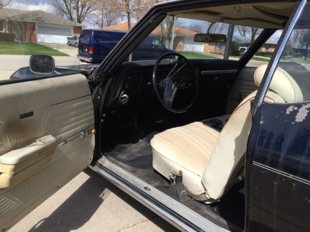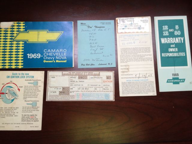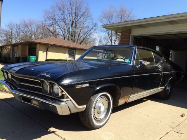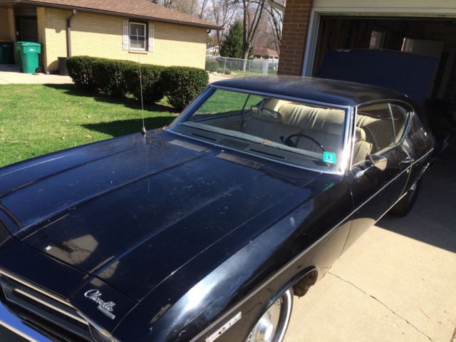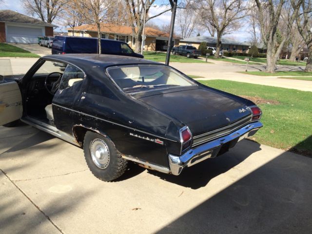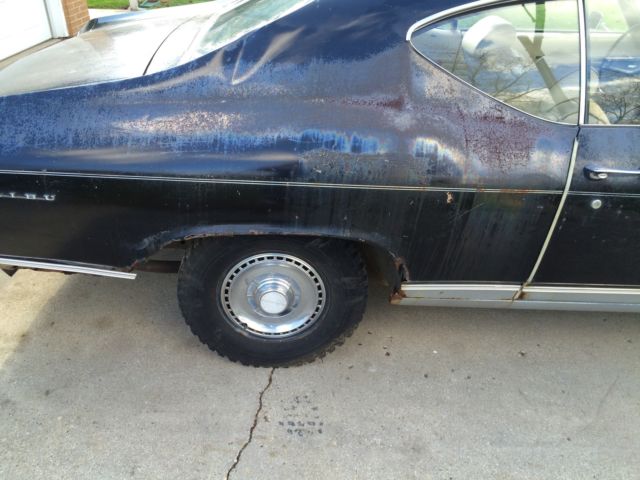This is an all original 1 owner 1969 Chevrolet Malibu Hard Top. The car was purchased in May 1969 from Pine Belt Chevrolet in Lakwood, New Jersey. The car is black with white interior. It also has the factory removed landau top. It is a 2 door hard top with power steering and manual brakes. This car has never been restored and never been taken apart. Everything is original except the battery tray, which was purchased from Original Parts Group. Included with the sale is the original metal plaque warranty book, original order form from dealership, the salesmens notes from 1969 and the owners manual.(see pictures) The car has all original interior with a couple of small tears in the seats, a small crack in the dash, the headliner is split and coming down and the package tray has been removed. The car was originally undercoated in 1969 straight from the dealership. The floors,frame, doors, rocker panels, fire wall inner fenders, hood and trunk are solid. With the exception of one small hole in the trunk. The car does have some rust. The lower front fenders, the lower rear quarter panels, rear wheel wells, and around the rear window. ( see pictures) All the glass in the car is in great shape as well as 90% of the trim pieces on the car. Bumpers are in GREAT shape as well as the grill and tail piece. The car was last on the road in 1994 and was stored outside until 2006. It has been stored in a garage from Dec. 2006 til now. The car last ran in spring of 2012. The doors open and close with no sag. Truck and hood open and close perfectly. The windows go up and down. The passenger rear window needs a little help going up. This would be a perfect 1 owner all original car, with paper work, to restore or make a project this spring. I was going to restore the car myself , but unfortunately , I will be unable to. The car does roll and steer. Brakes are not working. The car does have snow tires on the rear , but does come with 2 more rims and tires with the sale. The original spare and jack also included. Please see pictures, as these are also part of the description. GOOD LUCK BIDDING AND THANK YOU FOR LOOKING!