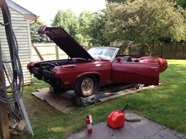 This car was sold in Portland Oregon on 9/16/1969. Marti Report comes with the car describing factory build details for this car. Original 351 Windsor 2 barrel, I have a block, heads, intake and exhaust manifolds, crank, oil pan and timing chain cover for a 351 Cleveland Cobra Jet engine that comes with the car. A brand new in the box, "EZ Softtops" stayfast canvas Pepper top with glass back window, new cables,top pads and black boot and tilt steering wheel.There are 6 factory maintenance and build manuals in excellent shape. there is a 2nd interior, front seats and door panels from a hardtop non XR-7, in exceptional condition. I also have new advanced front seat upper and lower foam from West Coast Classic Cougars. All of the trim is dent and rust free. This car is 95% rust free, the worst of the worst was a blown heater core that leaked antifreeze on the forward passenger floor. I have cut out the damage and have a complete floor pan. I used "Bullet Proof anti corrosion inhibitor on the entire floor. The car is not running and is partially disassembled. Additional pictures are available.