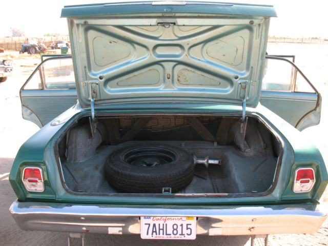 Very economical 6 Clynd. 1964 Chev. Automatic 4 door Nova Runs very well. No knocks or problems. I took my friend for a 250 mile ride without any issues. This car is ready for the special girl or son for a first car. Very easy to tune up or change that oil. This car just had a professional paint job last month. door jams and dash ($2,500.00). This car also sports brand new firestone tires that should last for at least 75K ($675.00-300 miles on tires). passenger front floor pan was also replaced due to age. Photos do not reflect painted jams and dash but car still at paint shop and will be done. Grill is not perfectly straight but is in drivable condition. I really do not want to sell, but I must, due to the purchase of my first home, and need closing cost help. I am a Disabled Vet and need a place to call my own and settle down.. You will be proud to enter this car in a spring time car show it's that nice. Title is current and free of issues. You can drive this car away after purchase. I will require you to pay by PayPal for a out of state sales, and for those locals please bring cash immediately after purchase. There in no returns on this car and is being sold as is. No oversea sales please. This car body style is highly sought after to make hot rods out of and will hold it's resale value for as long as you own the car. On Apr-06-15 at 17:39:06 PDT, seller added the following information: 64 Nova is subject to sell as it is on other sites for sale.