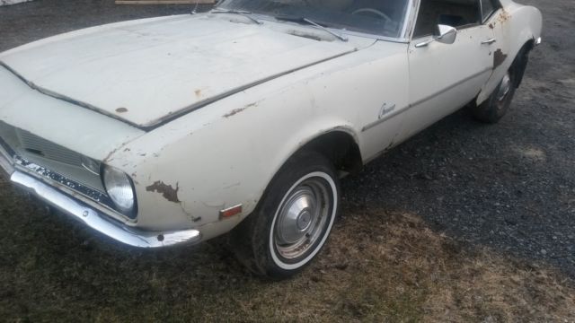 Please call Jay at 518-857-0311 with any questions. CAR IS SOLD WITH BILL OF SALE! You are bidding on a 1968 Camaro Barn Find. This has been sitting in a barn since 1990. It was a 327 2 Barrel with a powerglide transmission. It does come with the original engine and transmission,but the block is cracked. This car has VERY NICE FRAME RAILS! The floors will need minimal pan work. Under the rear seat is very nice and all of the floor cross braces are very clean. The front subframe mounts are great shape. The trunk pan will need some repairs,but not a full pan. The rear shock towers are nice,the passenger side one has some rust just behind the tower,but is a easy fix. The car will need rear quarter panels,someone put lower quarters over the original ones years ago. It is an original Deluxe Interior car and interior is pretty complete. It is missing the radio,but the radio hole has not been cut. Vin Tag is on the dash,cowl tag is missing. Car will need a complete restoration but is a great car to start with. The registration for this car was lost and it will be sold with a bill of sale! CAR IS BEING SOLD AS IS. MUST BE PAID IN FULL WITHIN 7 DAYS. A 500.00 Non-refundable deposit is due immediately. THE BALANCE IS TO BE PAID IN CASH OR BANK CHECK,NO PAYPAL FOR THE BALANCE!!!!! All funds must clear before the car is picked up! I have the car listed local and reserve the right to end the auction at anytime!!!!!