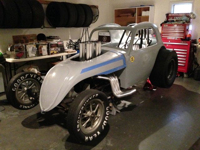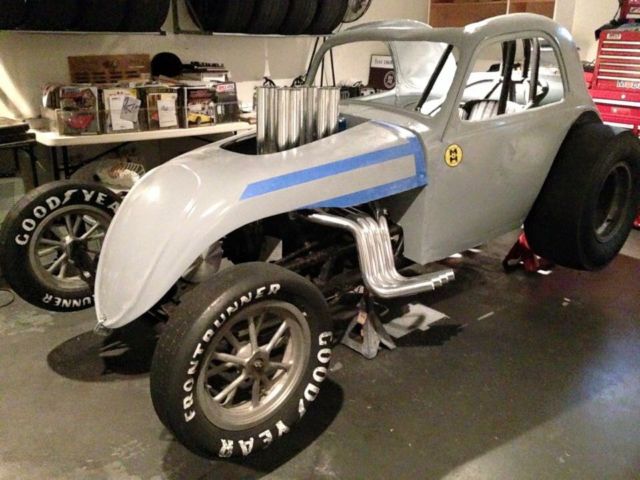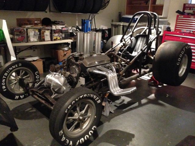 Up for auction is a 1949 Fiat Topolino 500 altered fuel dragster. The chassis was built by Foye Gilmore a well-known dragster chassis builder in Florida. The body is all steel minus the fiberglass nose and is a non running project. The engine is a 350 cubic inch Chevrolet block with early model Hilborn Injection unit and 12 inch velocity stacks. This unit is complete with high pressure fuel pump and 2 gallon reproduction moon tank. Vertex Magnetto and Lokar shifter. The rear wheels are original Halibrand magnesium and the fronts are vintage American Racing 12 spoke dated 1965. Brand new M&H slicks on the front and rear. Rod and Race original fiberglass dash and working Stroud parachute. 1957 Oldsmobile rear end shortened with Henry's race axle shafts. This car is the real deal and raced extensively in Alabama and Florida during the early seventies. Please ask questions. On Apr-06-15 at 06:00:16 PDT, seller added the following information: Brand new Sanderson Zoomie headers and Kirkey low back seat. Stewart Warner gauges. The roll cage is 21" across where the driver seat is mounted. Will consider selling as a roller.