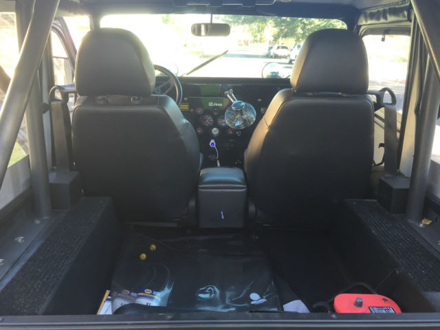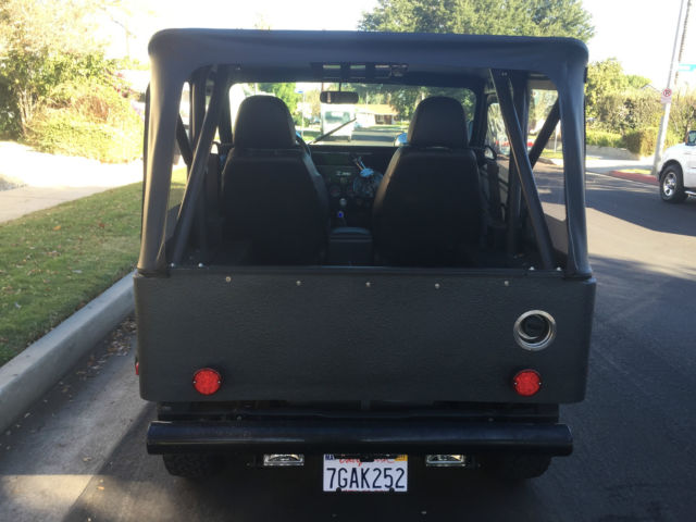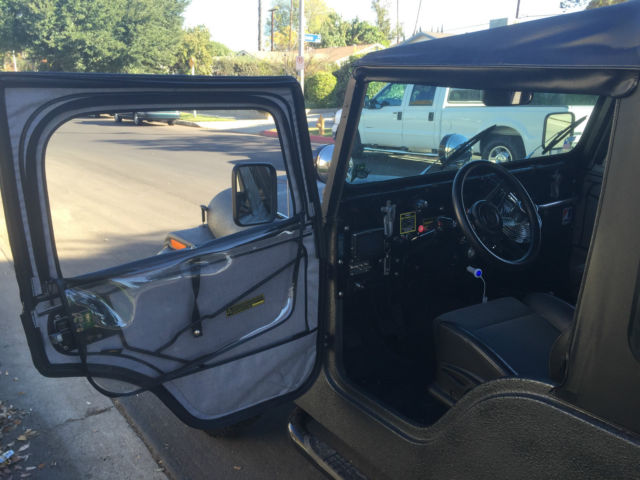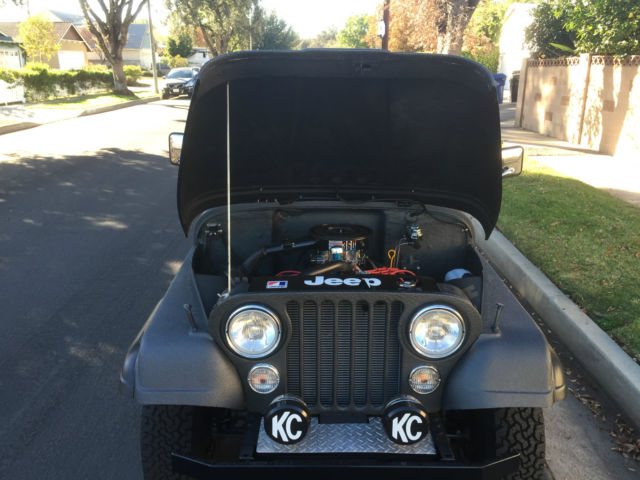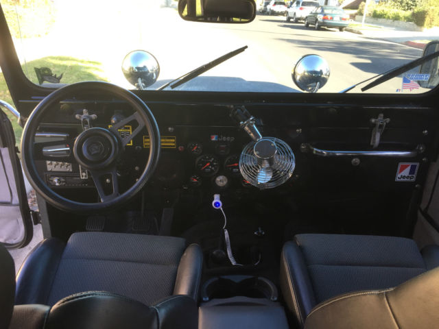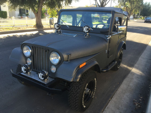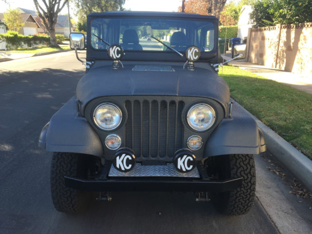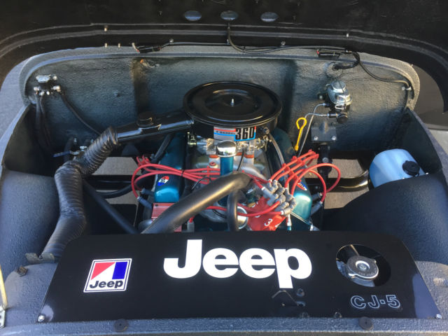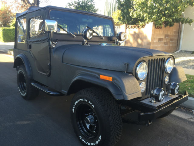 Show quality, frame off restored 1974 Jeep CJ5. Restored to look old school but with hints of hot rod appeal....custom built dash...recaro seats...super clean engine compartment with no wires going everywhere...healthy AMC 360 with some high performance mods-cam-long tube headers-ignition system. Absolutely everything was either brand new or rebuilt/restored to as new condition. Here is a partial list: - professionally rebuilt 360 AMC with loopy cam, high volume oil pump, long tube headers, Edelbrock carb/intake, glasspack type mufflers....motor sounds like old school AMC/AMX muscle car. New aftermarket distributor and ignition box with MSD spark plug wires New 200 Amp alternator New water pump/fuel pump/starter New fuel tank/sending unit/skid plate and straps New rubber body mounts New rubber motor and transmission mounts New stainless steel outside mirrors New windshield frame New windshield New wiper motor/wiper arms/blades and wiper washer Rebuilt T15 3 speed manual transmission and Dana transfer case Rebuilt Dana front/rear axles with locking hubs New clutch, pressure plate, and flywheel New clutch linkage Custom built, one of a kind black powdercoated dash, new ignition switch, headlight switch,high beam switch, turn signal with hazard switch, horn button, etc. Built in GPS Detachable face pioneer cd player with USB flash drive slot and AUX input New Pioneer 6x9 and 5-1/4 speakers 2-12 volt Aux outputs for cell phone charging, etc New heavy duty floor mats New rampage grey center console New fire extinguisher with mount New stainless brake and fuel lines New Autometer oil, volt, speedo, tach, gauges Fiberglass tub is rhino lined Body color is corvette cyber gray New Besttop softtop