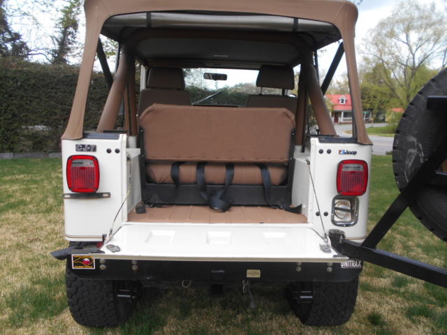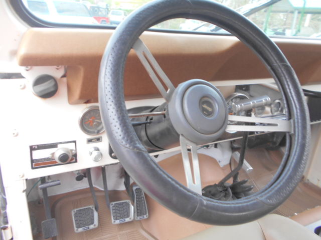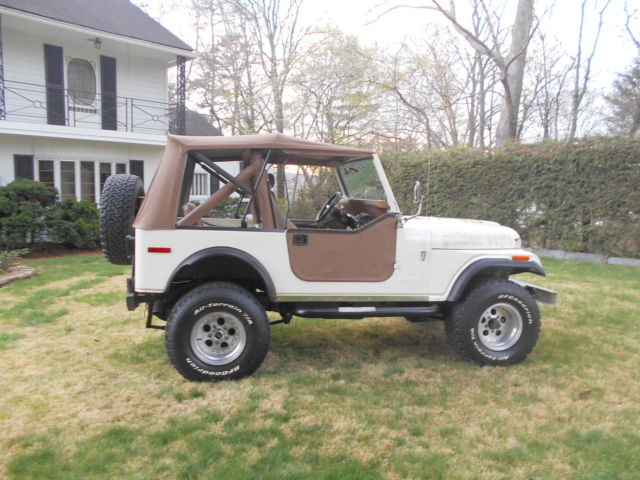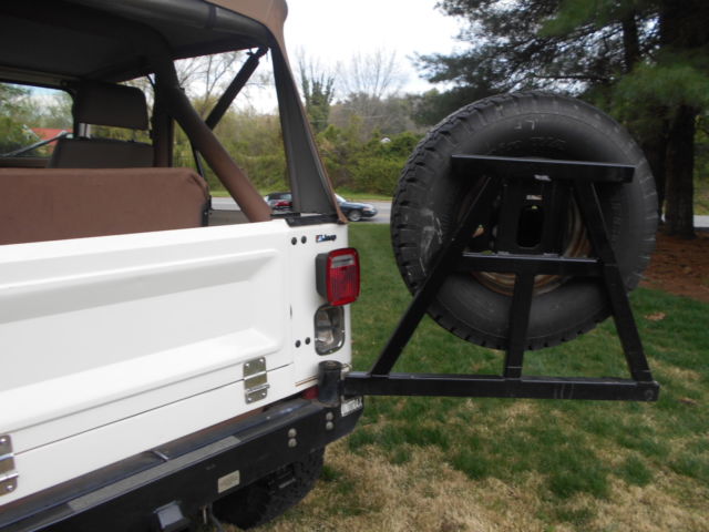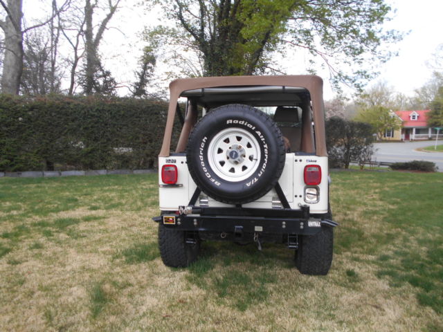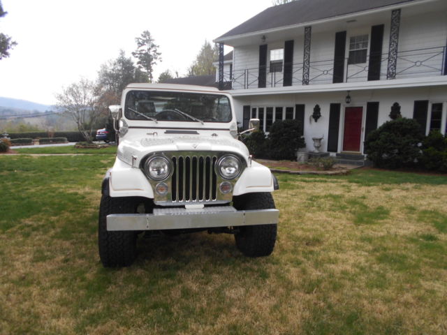 For sale a 1979 Jeep CJ7 with a golden eagle emblem. This Jeep has a tach, clock, and has 27,761 miles on it since it was restored. It was restored by the owner of our local Chevrolet Dealership, 18 years ago. Matter of fact I told him that I had bought this jeep, and he came and looked at it, and told me to the extent that he had built it. When he first got the jeep over 18 years ago, it was a tan Jeep with a gold eagle emblem, and he wanted it to be white. Not long after he restored it, he sold it to another gentleman who is a friend of mine, and lives here local in our town, who only kelp it for a short of time. He sold it to another friend of mine, which is a North Carolina State Patrol Officer, and he had it for 15 years. Actually he bought it for his wife, had always promised that he would give me first shot, if they ever sold it. The Jeep is a 304 4speed., as you can see the body is sound, and it is mechanically great. I would drive it to California in the morning. You can see that it has a 3 inch lift kit, that was done right, and the tires are almost new, mounted on champ 500 aluminum wheels. If you are a Jeep lover of the 70s and 80s you know these were the wheels of the day. You will note that the front bumper is aluminum, and has an aluminum brush guard, I personally didn't like the look, but it will go with the jeep. The top is in very good shape, the side curtains are all very good, and the plastics are good. Particular that the top is over 15 years old. Which lets you know that the Jeep has been garage kelp since the restoration. As all the year model Jeep the front steering has a little bit of play. Just a beautiful Jeep. There are a 3 or 4 places that the paint has bubbled. This is not a rusty Jeep, this is a good Jeep. I thought I really wanted to keep it, but I just don't need it. Good Luck bidding, you will be happy. We reserve the right to remove this vehicle from the auction at anytime, due to it is on a car lot for sale.