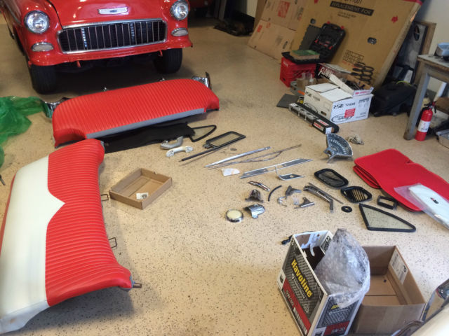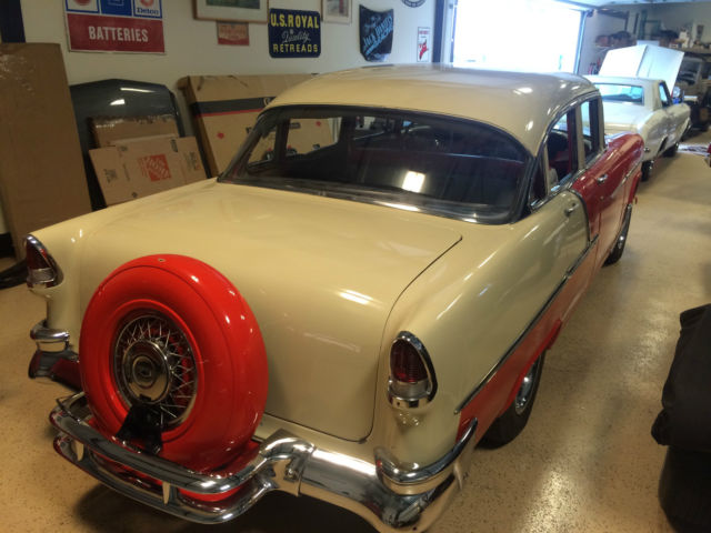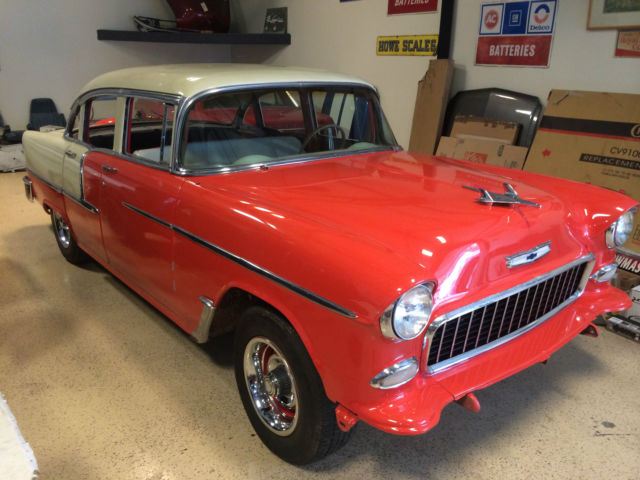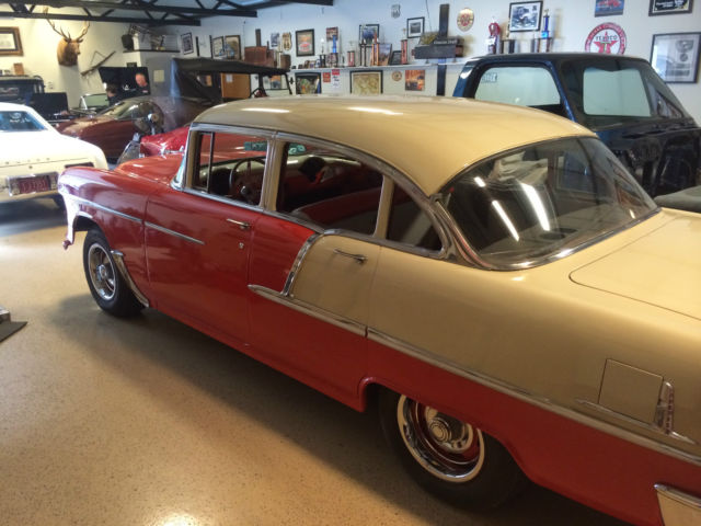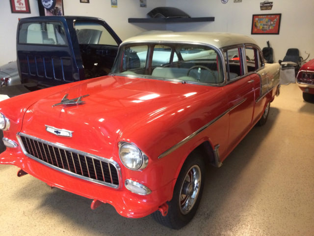 This is a great running, good looking 1955 Chevy 4 door. We purchased to finish as a nice driver but after a year of not being able to work on it because of ALL of our other projects, we have decided to let it go to someone who has the time to finish. We bought a whole new interior package for it($3500). New seats, carpet, headliner, floor mats, etc. the interior is all that needs finished. We have most of the parts for the interior but are lacking a couple here or there. I dont know every single piece its going to take. This is where we are at on it. The car was painted inside and out prior to our ownership. It is not show quality by any means, but it is clean and free of dents. There are a couple scratches here and there but the overall appearance is nice as you can see in the pics. We repaired the brakes, installed a new aluminum radiator($450), rebuilt the carb, cleaned the fuel system, and did a full tune-up. The car runs out great and stops with no problems. The 3 on the tree shifting is vintage. With a little work, it will make a nice driver or a nice place to start a show car restoration. What you see in the pics is what you get. Feel free to contact me with any other questions. Aaron