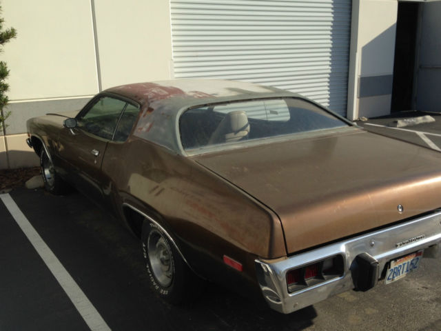 You are bidding on a 1973 Plymouth Roadrunner that is in need of restoring. The car has been parked for just over one year. The car was running when parked. I have removed the dash and interior panels. I have dash gauge panel and dash pad. The car has a 318-2 bbl this is the factory motor and trany. The floors are in good shape as well as the trunk floor. I have the center console , bucket seats and rear seat. As you can see the body is in pretty good shape and no major rust. With a days work the car would run and drive. This is a great starter car for someone looking to get into Mopar's. I have other parts that I will sell that are for this car. Some of the parts are on eBay now. Title is Clean. Buyer is responsible for pick up and shipping of car within 1 week after sale. Please feel free to ask questions about this car or other parts I have. If you would like more pictures of other areas on the car please let me know and I will email them.