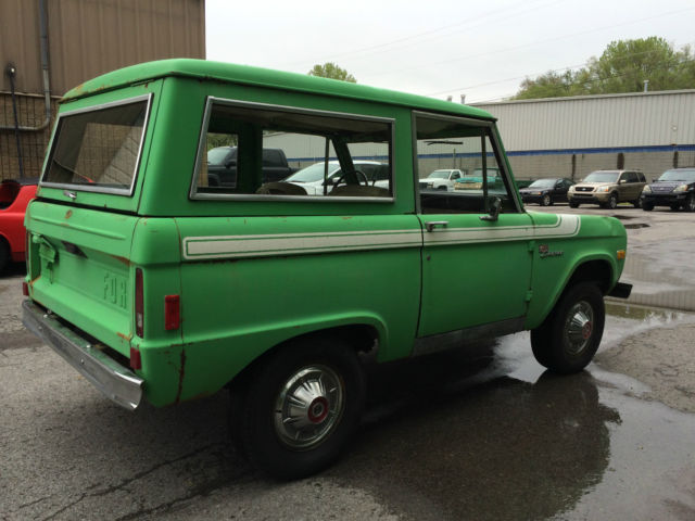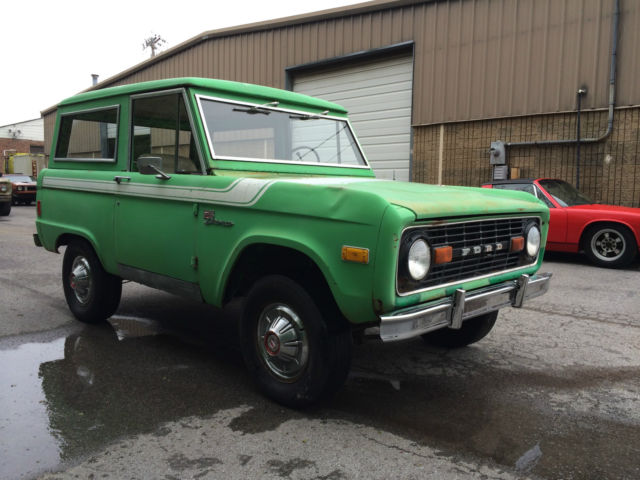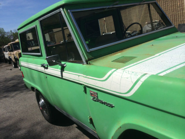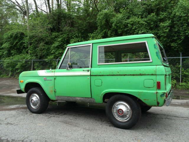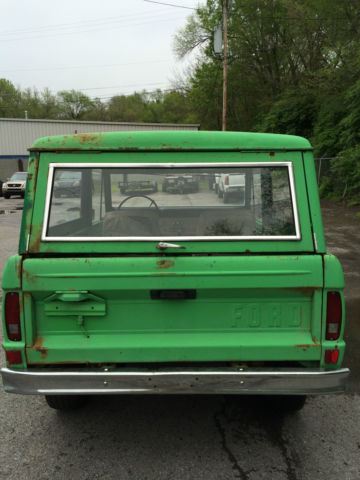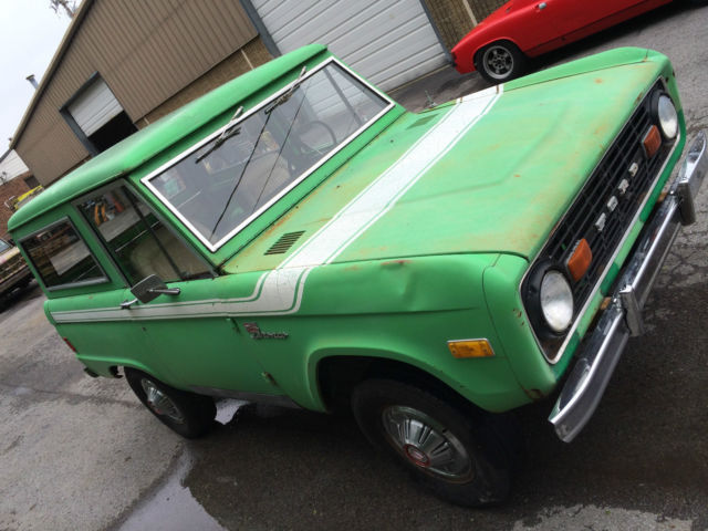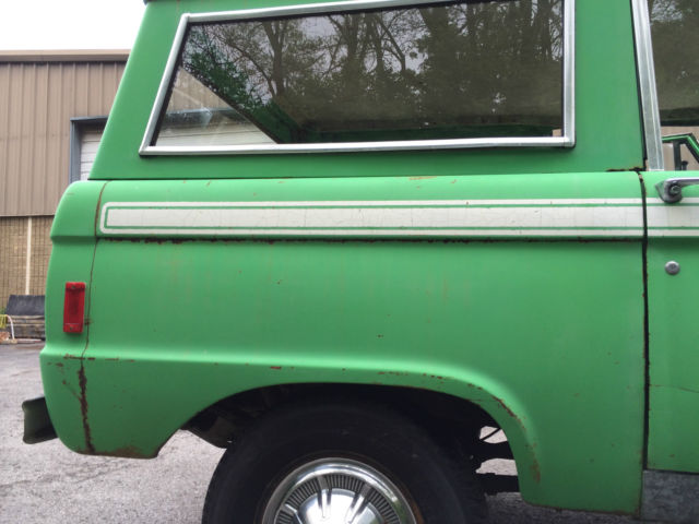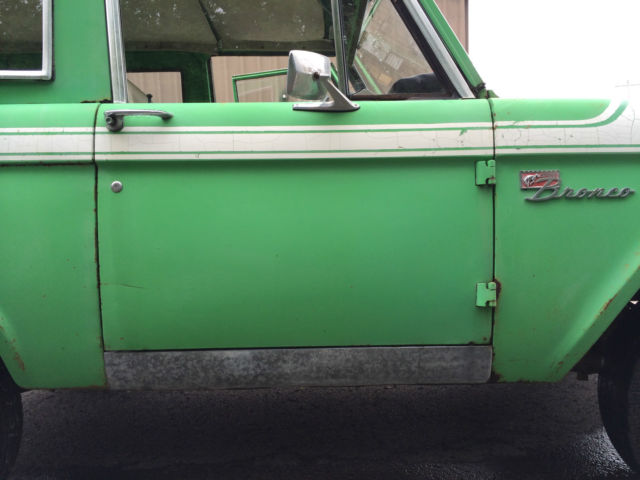 Available is a 1977 Ford Bronco Sport with Special Decor package. These models are rare and very desirable. This Bronco has been on a deer lease in Texas for a LONG time, and was recently discovered. I bought it as a non runner. The engine is clean and is all there and original, heads appear to have had a recent valve job. When I got it I installed a fresh battery, added some gas in the carb, topped of the fluids, and she fired right up! She doesn't smoke, and there isn't any lifter noise. It's a good motor. I've got her running off a jug until I can inspect the tank. It probably needs cleaning, but remember 77 tanks are poly, so no rust. I also have an extra 77 tank that's empty that I'll throw in. Right now she lot drives, the transmission shifts tight and solid (no clunking), and the power steering is fine. As you can see she is uncut. All metal is original and it looks like most the paint is too. All the glass is good. The interior is all original, the dash is uncut, dash pad is nice, and the original AM radio is still intact. It has all the Sport stainless and brightwork. There is rust in the front floors, and the rear bed corners. There is no bondo, so there are no surprises. There is galvanized metal over the outer rockers. The inner rockers look solid. This is a great opportunity to get the last, and arguably the best year early Bronco in a true 70's color, with the Sport AND Special Decor package. Bronco is sold as is with no warranty. I reserve the right to end the auction at anytime as it is for sale locally. Deposit is required at the end of the auction, and it is non-refundable. Please ask questions and your wife before bidding. Thanks for looking.