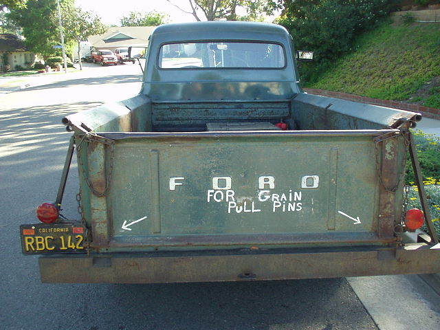 This is a daily driver. This is not a show truck. Much better than most F-100 series trucks . Never in a serious accident however some dings in right front fender. All the glass is good. Notice the original radio and dash, nice original head liner and correct over head speaker. The pictures speak for the truck, all gauges work etc. Very good interior with original Ford seat material except driver's seat has 2 splits so new "Saddle Blanket" seat cover was just added so I didn't get my overalls dirty driving it to church. Clean frame and dry floors. The wood bed and runners are all original but some of the oak planking is split, no funky steel plate or ply wood cover up. Also I could have installed new rubber matt in cab but wanted to show rust free floors. How does she drive? Well if you had driven this off of the show room floor you would have known this is a work truck very low first gear (You can take off in second) she does not jump out of gear and smooth shift to second, now your up to 15 20 miles an hour, drop down to 3rd and quietly roll up to 60 miles an hour. How fast is top end? Don't know I have never had it beyond 70. Runs cool, heater and defrost work, windows crank down as they should . Wings are missing the little latch. Windshield does have wiper scratches, possibly could be polished out. These are button start..turn key on push button. Does not smoke, has new muffler and exhaust header. Very reasonable BUY IT NOW price of 8500. I can send more pictures and answer any questions from serious buyers. NO PAY PAL, We can deliver to shipping facility for over-seas buyer. No scams or help needed for selling this car. Local inspection welcome.If you send me your number, I will keep it confidential and call you to talk about the truck. There is a you tube video under gridleyfarmer showing the truck when I first got it off of the farm. Since then many improvements have been made. New tires etc. Thanks for looking.