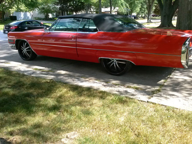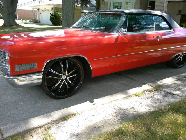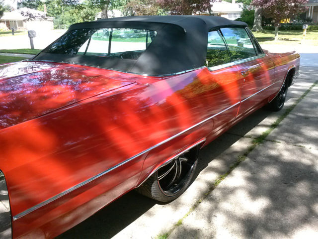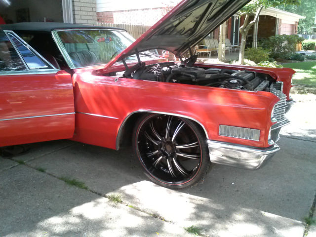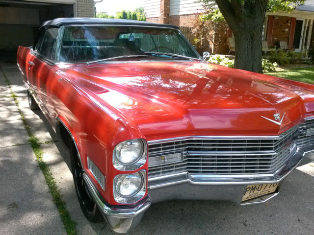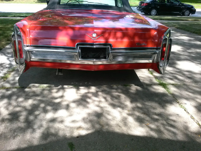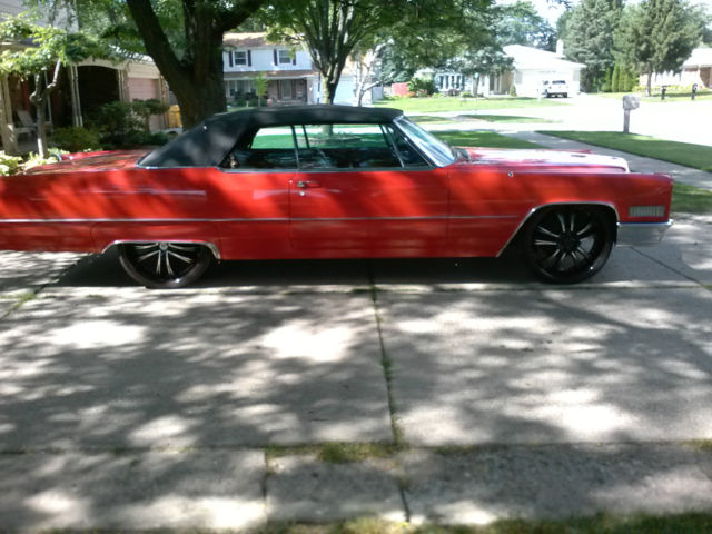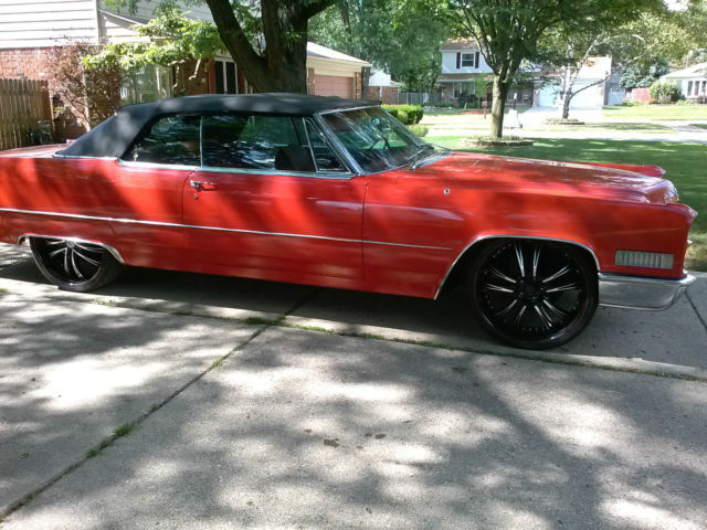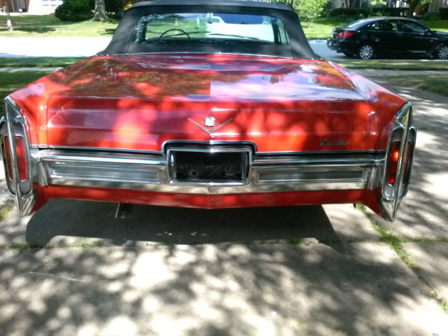 Up for auction is a rare, one of a kind 1966 Cadillac Convertible. Completely restored by a Master Mechanic who passed away. This red beauty with black convertible top has been garage kept for years and well maintained with very minimal driving. Original engine and transmission. New paint, new Lexani low-profile rims and tires. In great running condition and ready to hit the highway. Original Cadillac wheels and hubcaps included in the sale. Car cover and hydraulic pump also included. Interior is clean and smoke free. Paint and chrome have a reflective shine. This car could definately be a "Show Winner" and the perfect chioce for a classic car enthusiast. Clean and clear title. Serious buyers only. The nonrefundable deposit is due immediatley following the end of bid and full payment is due within 3 days of auction ending. Car will not be released until paid in full and payment has been cleared by my bank. Buyer is responsible for shipping and insuring vehicle after payment is made. Original owners manual included. General Motors produced a total of 19,200 Cadillac Convertibles in 1966. Car specifications are as followed: Engine Type : V8 7030 cc | 429.0 cu in. | 7.0 L. 340 BHP (250.24 KW) @ 4600 RPM 480 Ft-Lbs (651 NM) @ 3000 RPM Bore : 4.1 in | 105 mm. Stroke : 4.0 in | 102 mm. Transmission: Automatic Turbo Hydra-Matic Power windows and locks in working condition Shipping Option: United Routes takes classic car transport to a new level of service, maintaining the highest standard of quality and turnaround time in the industry. Trained personnel and a full customer service staff are standing by to assist you in all your transport needs. Tailor made to your specifications with a solution to every question, this is our commitment to all our clients. Call us at 866-311- 8815! www.unitedroutes.com | Get a Free Quote
