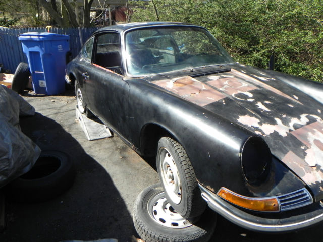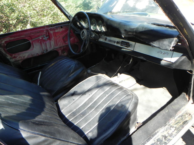 For sale is a 1967 porsche 912, color code 6602 (Polo red), Euro with Ambient temperature and Euro heater boxes. The car is black currently. Vin 457530, engine # 836784. The car was originally Red, the previous owner painted it black. The car is complete, minus a headlight, door frames, and deck lid grill. The headlight on the car is of a Porsche 356. The engine fires up and idles. There is oil leaking from underneath the fan housing / dog house. Sounds like the oil cooler plastic plugs are shot. The car does not drive at the moment, it just starts and idles. There is rust underneath the car, from front to back. Suspension pan, floors...see pictures. The previous owner made new floors from Fiberglass, over the original floor pans. So there is floors made of Fiberglass in the vehicle, and the metal floor pans are underneath the fiberglass floor. The doors are missing the chrome frames. The original floor pans are hanging loose. The rear turn signal housing are also made of Fiberglass. Its a project, sold AS IS. Comes with the fuel tank, removed it to take pictures. Ignition key and 2 keys also come with the car. I have a clear and clean title in hand. Car is located in New Jersey. You are welcome to come and inspect it. $1000 deposit immediately after auction closes, and the remaining balance within a week. I take Paypal, so add a 3% fee please, or cash in hand. I will assist with loading the car onto a tow truck/flat bed, for the international bidders. Front calipers come with car, they are off the car now, and will need rebuild. Rims are not date matching. I think some are 66, 69, 71 or something like that. Besides that, i think i covered everything. Send me emails if you have questions. For more pictures of floors and underneath, copy and paste the link: http://1drv.ms/1FxterG Good luck