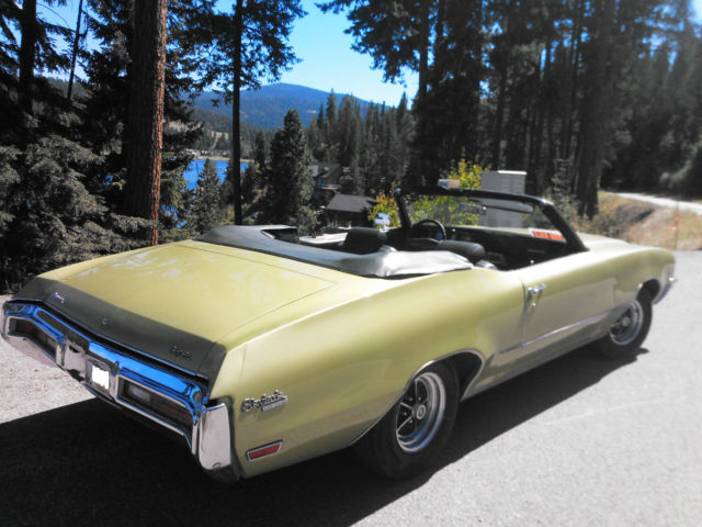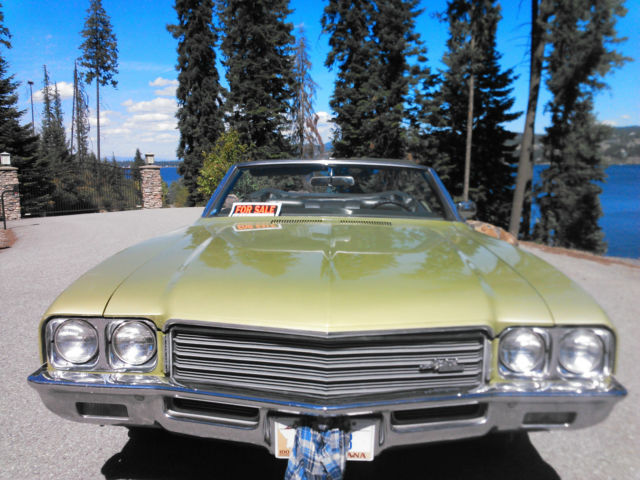 Here is a beautiful all ORIGINAL clean car with 73,XXX miles, I am the third owner . It has lived most if its life in a garage with only adult drivers! All mechanical parts work great, window cranks, door latches but especially the POWER convertible top! I have paperwork showing regular maintenance throughout the years, as well as when the first owner traded in a '67 mustang for it when the car was bought in '71. Pro's: - Convertible - POWER top - New Hankook tires on chrome Buick sport wheels - Also comes with the stock steel wheels painted to match - The ORIGINAL strong running & freshly tuned up Buick 350 V8 - The ORIGINAL smooth shifting Power-Glide automatic transmission - Body is in great shape, P rofessionally done ! - New paint in the original color, Professionally done! - Chrome is flawless - Interior is in fantastic shape Con's: - Normal use wear on seats and carpet - Small tear previously repaired in convertible top (doesn't leak in rain storms, parked or driving) - Dash clock works sometime - AM Radio turns on with the speaker but no radio comes in. Feel free to email me any relevant question, I will answer as quick as possible. -Wes 4O6-381-1450 www dot facebook dot com/CranmoreClassics You may have seen this ad previously, I've had to re-list it because of an attempted buyers scam. Serious buyers only, please don't waste my time.