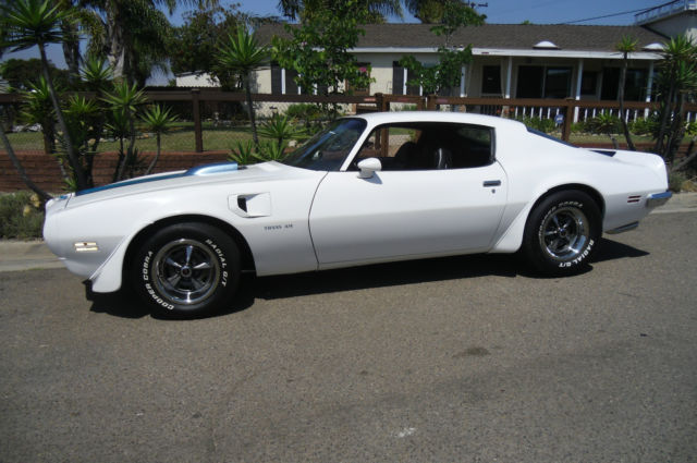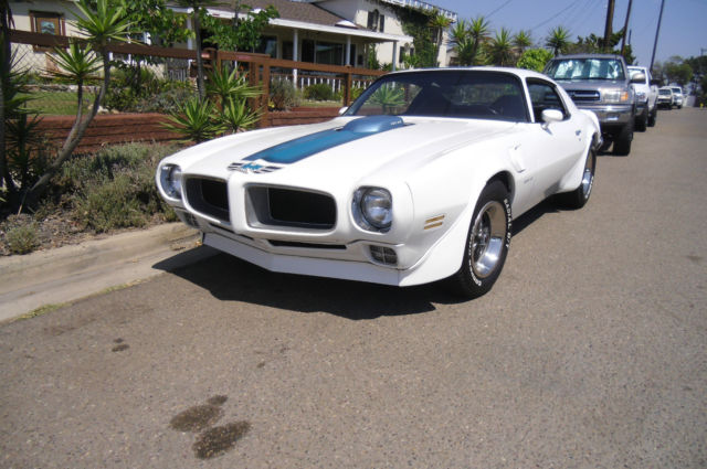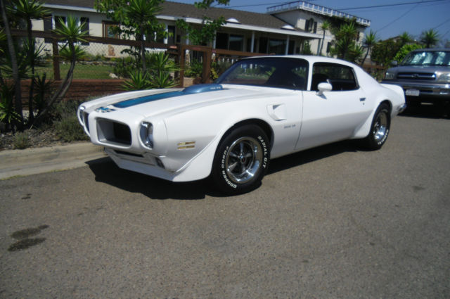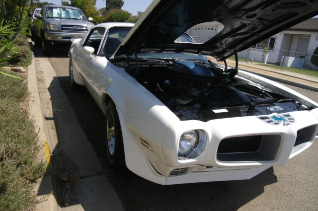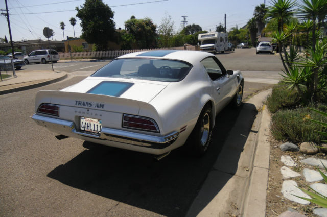 THIS IS AN ABSOLUTELY GORGEOUS 1972 TRANS AM HO 455 TRIBUTE,GM WAS ON STRIKE AND ONLY 472 TRANS AM 455 4 SPEEDS WERE EVER MADE,AND THIS IS ONE OF THE MOST BEAUTIFUL TRIBUTES U WILL EVER SEE.IT HAS UNDERGONE A FRAME OFF NUT/BOLT RESTORATION AND SHOWS THE STUNNING ORANGE OXIDE UNDERCARRIAGE THAT U NEVER SEE ANY MORE,ABSOLUTELY 0 RUST ANYWHERE AT ALL.U WILL NEVER FIND THAT.THIS CAR IS GORGEOUS,GORGEOUS,GORGEOUS AND EXTREMELY FAST,HAS THE YD CODE MOTOR WHICH IS THE 4TH HIGHEST HP OF THE 5 OFFERED,IT HAS STAINLESS HEADERS WITH 2.5 IN PIPES TO FLOWMASTERS AND SOUNDS ABSOLUTELY AMAZING.THE PAINT AND DEAD STRAIGHT BODY ARE STUNNING,THE COLOR COMBINATION IS BEAUTIFUL,INTERIOR IS BRAND NEW AND BEAUTIFUL,OF COURSE IT HAS POWER STEERING AND POWER DISC BRAKES,IT HAS THE FACTORY SNORKEL AND SHAKER .THIS CAR FLIES AND IS A BLAST TO DRIVE,JUST TOOK IT TO THE GOOD GUYS CAR SHOW HERE IN SAN DIEGO AND IT GOT TONS OF ATTENTION,IT WAS THE ONLY ONE THERE OUT OF THOUSANDS OF CARS,TRY FINDING A BEAUTIFUL FRAME OFF ,RUST FREE 4 SPEED AT ANY PRICE,NADA BOOK IS @$85000+,HATE TO SELL IT BUT JUST DONT HAVE THE ROOM FOR IT ANY MORE,SOMEONE WILL BE REALLY POROUD TO PUT THIS PIECE OF HISTORY IN THEYRE GARAGE,IT IS A TRUE COLLECTOR,IT LOOKS,RUNS,DRIVES AND SOUNDS FANTASTIC,EVERYTHING FUNCTIONS AS IT SHOULD ALSO HAS A GREAT STEREO IN IT AND 1 OF THE EASIEST CLUTCHES I HAVE EVER ENCOUNTERED(DUE TO THE 4 FINGER PLATE)MAKES IT A DREAM TO DRIVE,IM IN SUNNY SAN DIEGO,FLY IN I WILL PICK U UP AND DRIVE HOME,OR WILL HELP U ARRANGE TO HAVE IT SHIPPED(I WOULD ONLY RECCOMMEND ENCLOSED TRAILER FOR THIS SHOW CAR,PLEASE CALL W ANY QUESTIONS,CAR IS FOR SALE LOCALLY AND I HAVE DRASTICALLY REDUCED THE PRICE TO SELL.THX 858-344-0530 I RESERVE THE RIGHT TO REMOVE AND SELL LOCALLY ,DONT MISS OUT ON THIS CROWD PLEASER,I HIGHLY ENCOURAGE U TO COME SEE THE CAR FOR URSELF AND U WILL BUY IT ,PS UNDERSIDE PIC WAS OF REAR MAIN SEAL BEING REPLACED IT IS ALL BOLTED UP AND TURN KEY
