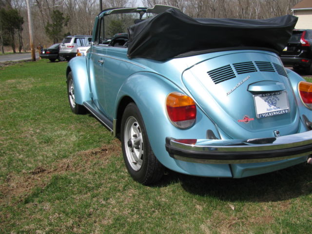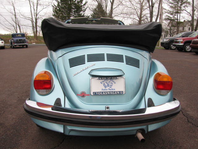 Fuzzy Dice Autos Has up for auction an absolutely spectacular 1979 VW Beetle Convertible Thatâs in top show condition! The 79 was the end of a long era of Beetles. This in itself makes the car highly collectible. This Beetle won top prize in many local car shows and this is why: The body with the exception of two very tiny road nicks on the hood, is flawless. The Florida Blue metallic shines as it did when she rolled off the assembly line. The chrome, the wheels and tires, and convertible top are all excellent. The under carriage is flawless and rust free. No sign of damage history anywhere. The interior is showroom new. The same can be said for the dash, gauge package, door panels, sun visors, carpeting, and everything else. The original 1979 eight track working Blaupunkt radio was replaced with an expensive Pioneer with all the updated features. The original does come with the car. Also with the car is a vinyl âbraâ hood and front cover and a very expensive fitted car cover. The original fuel injected motor runs quiet, strong and smoke free. The four speed manual transmissions shifts smoothly through all the gears. The best part of this beauty is driving it. This 79 drives straight, quick, smooth and stops on a dime. We sold many classic VW Beetles over the years but this one without hesitation is heads above all of them. So if youâre searching for the best out there then this is the one for you. Please donât hesitate to contact us if you require any additional information of photos. Unlike other classic car dealers who photograph their vehicles in professionally lighted studios or on Hollywood driveways, we at Fuzzy Dice shoot our pictures on our lot using only a point and shoot camera. So what you see is what you get. In this case the photos are in no way flattering. This beauty must be seen to be really appreciated. These classic VW convertibles can be found at various prices depending on the condition. You could certainly find one for considerably less than the selling price of this one if thatâs what you want. But if you want âthee carâ, then this one is for you. Please do not bid on this car unless you are fully prepared to own it. Best of luck bidding!