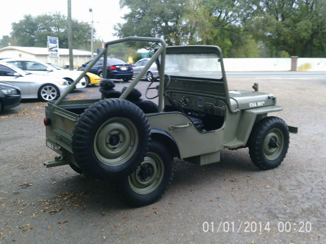 Take a look at this rare find. It is a 1945 Ford Army Jeep. This Jeep is in real good shape as you can see in the photos. All the body looks to be in good shape with minimal or no rust. It runs and drives out perfect. It appears to be the original flat head motor. The seats are in bad shape as you can see but that's an easy fix. The tires are a little dry rotted but appear to be original to the Jeep. How rare is that!! Someone throughout its life restored it a little bit but overall tried to keep its original. Take a look at the pictures and you will see how nice shape this vehicle is in. We traded this Jeep in from an owner in Alabama and it has been kept in his garage for years, and it shows. If you are in the area feel free to come by and take a look. We will be glad to show it to you, let you drive it and check it all out. Thanks for looking and feel free to call (850)-455-6527 or email with any questions you might have. Come by Wards Motorsports 11130 Lillian Hwy Pensacola FL 32406 Mon-Fri 9-5:30 to check it out. There will be a $199 dealer fee added to all auctions due to inflating Ebay fees, plus we must charge any state taxes and registration fees. We also require an immediate $500 deposit plus remainder balance to be paid within 5 days. You are welcome to come by and see the Jeep prior to bidding, however once you bid it is yours if you win. No tire kickers once you have won item. Please do your research prior to owning. Call Mike @850-455-6527 Mon-Fri 9-5:30 with any questions. We will assist with shipping but we do not offer shipping. Thank you for your business.