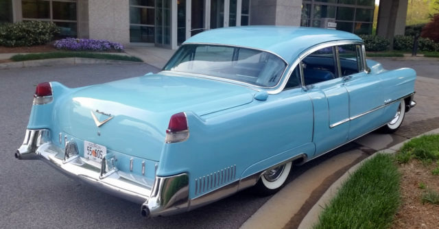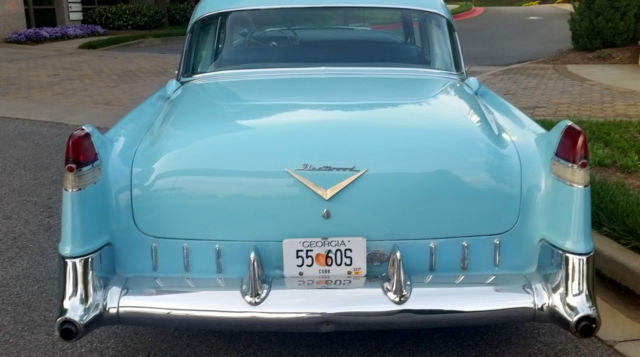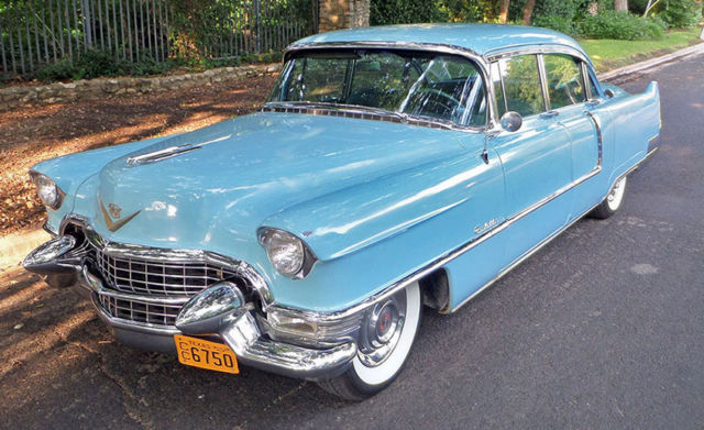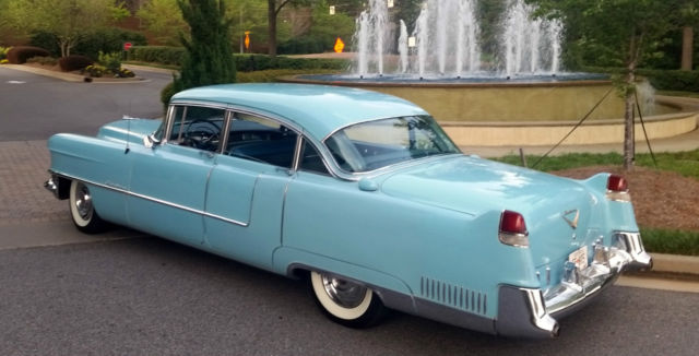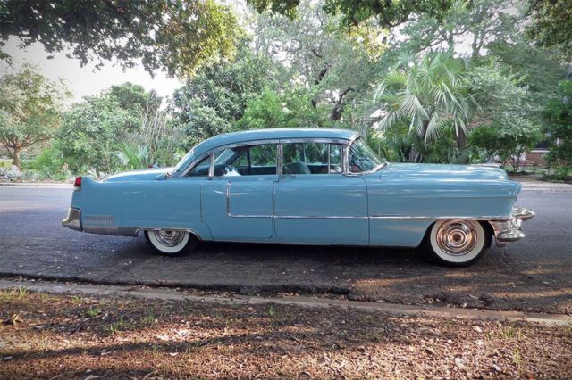 Wonderful ORIGINAL survivor with ZERO rust -- a Texas car. Just a great car that drives very well. Extremely solid body. Beautiful Azure Blue original color with much original paint. Original V-cloth interior is in fantastic original condition -- very usable and elegant. Good looking chrome and stainless. Engine starts right up with no smoke, runs smoothly with no overheating (runs about 1/4 to 1/3 on the temp gauge). No oil leaks or transmission leaks! Transmission shifts well. Mechanically, it has been gone through a good bit -- new battery, cables, exhaust, brakes (more about that later), plugs, wires and wire organizers, valve cover gaskets, dual point distributor plate, coil, fuel pump, fuel hose, fuel line, carb rebuilt, rebuilt starter, rebuilt generator, new shocks, sway bar links, properly adjusted and serviced transmission (by the best HydraMatic guy in the state), etc., etc. On the brakes, a fantastic job has been done there, yielding much confidence in stopping power: rebuilt/restored power booster (and sleeved to boot!), NEW master cylinder, rebuilt wheel cylinders sleeved with stainless steel, leading shoes grooved as per factory specs, major adjustment done (often left undone by many mechanics/restorers). The brakes are great. New radial tires. Engine compartment detailed and looks great. Very nice car. Like all 55 Fleetwoods, it includes power windows (working), power seat (working), power steering (working), power brakes (working - see above), etc. It also has the optional Wonderbar radio with optional foot-control remote, Autronic Eye, and the all-important AIR CONDITIONING (100% intact, but not presently working). Okay, now the not so great: paint could stand to be redone and to straighten out a number of minor dents and creases. Right rear bumper end is rusted through due to exhaust condensation (typical for 54/55 Cadillacs). A replacement bumper end (imperfect) comes with the car to facilitate repair and replating. Radio doesn't play, clock doesn't run, power antenna doesn't go up and down (but is not stuck). Air conditioning could use some attention. There is a lot of interest in this car, so if you want it, don't hesitate. The car is for sale locally and I reserve the right to end the auction early.