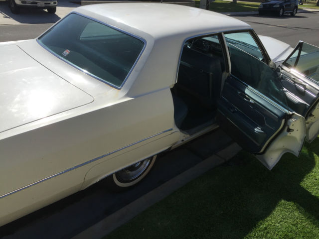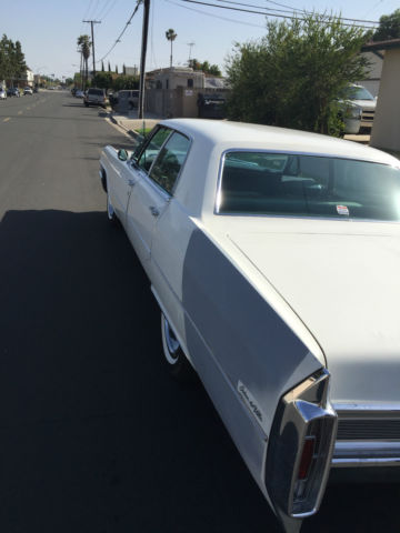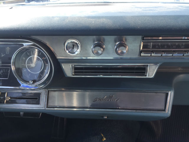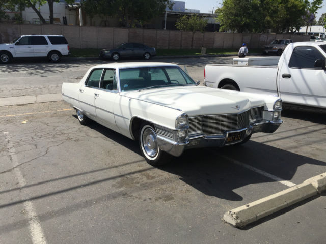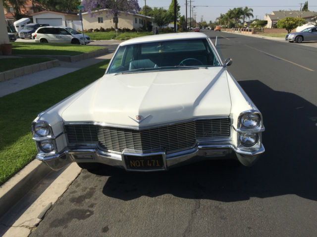 For sale is my 1965 Cadillac Sedan Deville 4 Door Hardtop. This car Drives like a dream. Once you drive it down the coast or through the mountains on a nice summer day you will be hooked. It is the best cadillac I have driven. It has all the bells and whistles factory. Power Windows Automatic Motorized bench seat Automatic Air Conditioning with a temp sensor in the car AM/FM radio Power Antenna ETC I am the second owner of the car. The first passed away years ago. The car has been garage kept and covered in the garage for most of its life. The paint is still original and everything is original except 3 parts on the car, the brake master cylinder, the water pump and the fuel pump. I just had the car go through a lengthy service overhaul that cost over $4500 New Fuel Pump Air Filter Water pump Oil filter Trans Filter Blasted and resealed fuel tank Fuel Seder carb rebuild Electrical work new seals all around trans flush fuel system flush and repair spark plugs and much more Tires have been changed once since car was new. They where changed in the 1990's and have seen less than 2,000 miles on them and are in great shape. All work and maintenance done at Dealer Repair shop. This car is ready for a cross country road trip. The only reason why I am selling this beauty is I am moving and need money for expenses. If I did not have to sell it I would not it drives like a dream. Pros: All original Low Miles No Rust Power everything Compelled drive system maintenance overhaul Body is in excellent condition Has spare factory grill brand new in box Has spare hoses brand new The Cons: Needs a paint job due to primer spray on riverside rear quarter panel to make it a show car Seat stitching needs to be resown Needs AC recharge Small electrical gremlins that are from the fuze box , should just need thorough cleaning Needs door seals That is it. Very little left to do to make it a $25k plus car I am asking $16,000 or best offer.