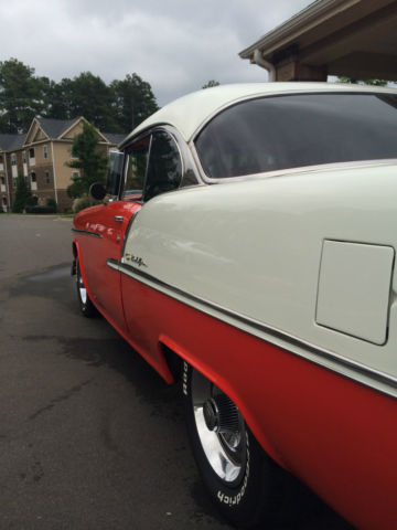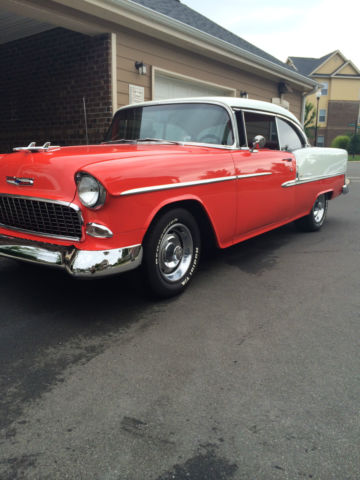 BEAUTIFUL 1955 CHEVY BEL AIR HARD TOP FOR SALE. I AM SELLING IT TO THE BEST OFFER I GET IN THE ONE WEEK OF THE SALE. BE PREPARED TO PURCHASE AND PLEASE DON'T WASTE EITHER OF OUT TIME IF YOU ARE NOT SERIOUS. THIS CAR WAS COMPLETELY RESTORED SEVERAL YEARS AGO BUT STILL LOOKS AMAZING AS YOU CAN SEE IN THE PICS. IT HAS A SMALL BLOCK V8 WITH A 4 SPEED WITH OVERDRIVE BY GEAR VENDORS. DISC BRAKES, POWER STEERING, AIR CONDITIONING. THE CAR LOOKS AMAZING AND DRIVES GREAT! I'VE DRIVEN IT 700 MILES ROUND TRIP WITH NO ISSUES WHATSOEVER. THE ONLY THING THAT I KNOW IS WRONG WITH THE CAR IS THAT THE SPEEDOMETER ISN'T WORKING WHEN I DROVE IT LAST. CAR IS FINISHED IN GARNET RED AND WHITE AND IS SUPER STRAIGHT! DON'T MISS OUT ON A GREAT DEAL! I MAY END THE AUCTION EARLY IF I GET AN ACCEPTABLE OFFER AROUND THE NUMBER I'M LOOKING FOR. DON'T BOTHER RIDICULOUS LOW BALL OFFERS AS I DON'T HAVE TO SELL THE CAR.. THANKS FOR LOOKING AND GOOD LUCK!