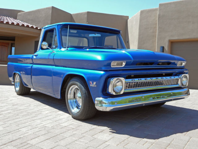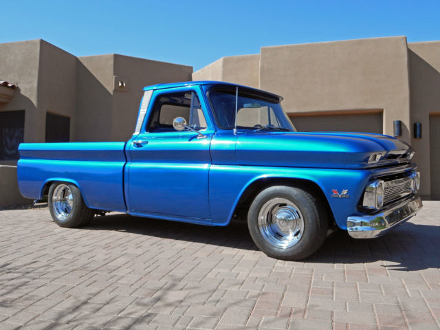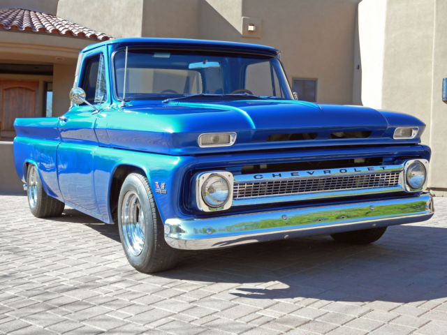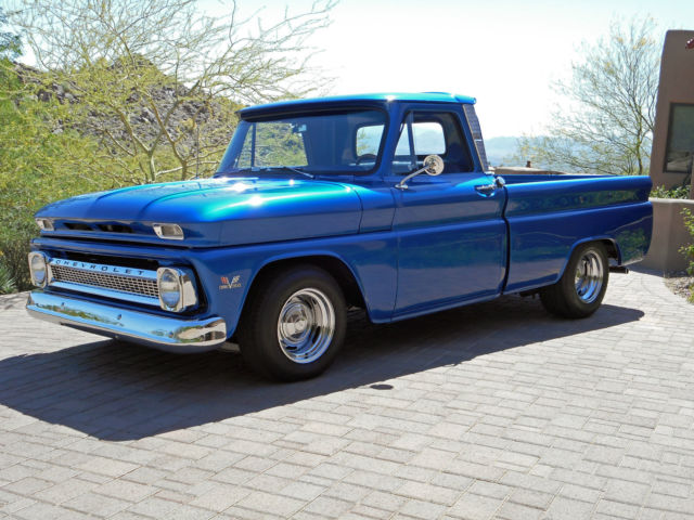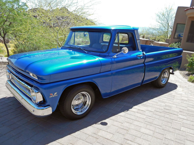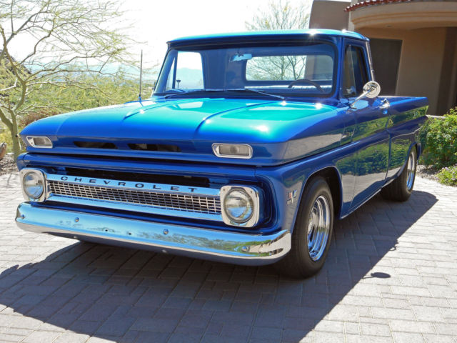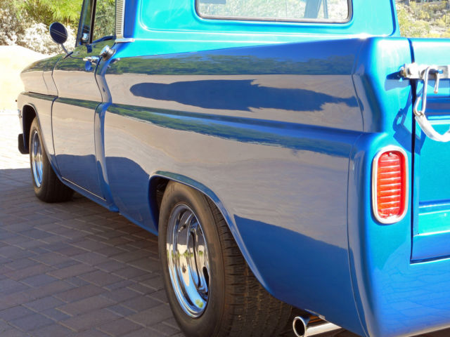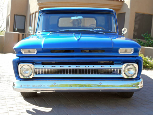 As we have entered our retirement years, periodically we will be parting with a few beautiful classics that we have cherished from our west coast private collection. This 1964 Chevrolet Custom Cab has been a favorite. It is a true Arizona native, that has received a recent frame off restoration and is in excellent condition. Never any rust or body issues. It is the most popular and desirable C10 short bed, a 1/2 ton Custom Cab. The high end restoration expenditures alone far surpass the reasonable "Buy it Now" offering. The "no hit" body is laser straight. Panel fitment is excellent! It has been painted once over, in a beautiful and very deep PPG two stage blue. No road rash nor dings. Presents in excellent condition! Truly, one of the best west coast Arizona natives available for new ownership.  Boasting a rare new 396 CID big block (Incredibly fun to drive) with a completely rebuilt Muncie four speed, floor shift. Nice and tidy, no leakage. Power steering. Power brakes. Extra large radiator with a shroud. New GM authorized hoses, braided hoses and new belts. Totally new wiring, with a new fuse panel as well. Nice clear original gauges with supplemental for safety as well. Original dash, never cut up nor messed with. AM/FM radio. Ultra leather seat. Window regulators are new. High quality carpet, with custom floor mats to match. The undercarriage is very clean and detailed as shown in the current photos that were taken on the day of this listing. This is honest quality, no spray bombs to hide anything. Dual exhaust with custom headers. Frame and body panels are exceptionally clean without issue. Disc brakes 11" on all four wheels. New brake lines and fuel lines. Custom oak wood bed. New shocks and springs. New BF Goodrich tires. Four bar rear suspension with sway bar. Completely rebuilt front suspension. Rear differential rebuilt with a comfortable gear ratio. You can enjoy driving beautiful Chevrolet Custom anywhere, with confidence and comfort. It handles absolutely excellent on the road. International buyers are welcome. Clear, private seller Arizona title. We will be attentive to transportation scheduling and do everything we can to be of assistance. There is no warranty written nor implied, sold as is. PayPal to be utilized for deposit only. Wire transfer payment is preferred. Certified bank checks are acceptable. The vehicle will only be released upon clearance of total funds. Inspections are welcomed. Call: 480-734-4545 directly if you have a question. Before 9:00 PM MST, please. The new owner will be a happy one! Thank you for viewing our 1964 Chevrolet C10 Custom Cab!