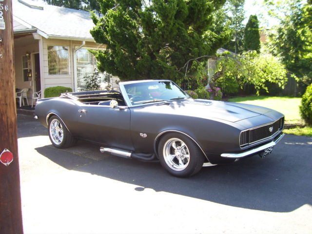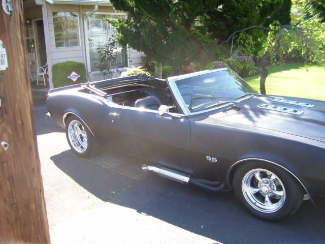 Over budget - you finish < OVER $ 35 K INVESTED > Almost eveything in this build is new or custom . First car was disassembled - subframe rewelded , rear quarters replaced and all rust repaired . heavy gauge steel floors and frame connectors , ladder bar suspension w/narrowed 12 bolt with 308 posi and Dutchman axles - mini tubs added / fold down rear seat was narrowed to accomodate and turned into trunk access flat floor , entire bottom side and subframe have been painted with hammered charcoal finish , 4 wheel power disc brakes - drilled and slotted rotors and QA1 chrome adjustable coil overs on all 4 corners - stainless steel fuel tank / tail panel smoothed with filler moved under license plate - tires and wheels are 17 x 11 Torq Thrust w / 315-35-17 rear & 15 x 8 and 205-60-15 fr - In front chrome CCP master / booster and upper tubular A-arms with 2" dropped spindles - HD sway bar - new power steering box - Vintage Air heater ( factory AC & heat removed ) polished radiator - Engine is a 1968 427 4 bolt mains # 3904351 with fact " hi perf " heads # 336781 -balanced and studded / mild build for the street not the track . polished " air gap " style intake - HEI - polished alum " 427 " valve covers - custom made Corvette style headers ( $ 1500.00 ) , satin blk ceramic coated then fitted w/chrome shielded side exhaust - transmission is a fresh rebuilt Super T-10 / new HD clutch & pressure plate - Hurst Competition Plus shifter. Body has side markers removed - special made SS / Cowl Induction hood w/ all metal donor hood graft and new SS louvers - new front and rear chrome bumpers / windshield / RS headlight and grill kit / tail light bezels and lenses / SS 427 emblems / door handles / chrome side mirrors / rear spoiler . All new white face Auto meter gauges in factory pods inside / window cranks . Tilt wheel - tinted glass ( regulators repaired ) . Factory bucket seats - convertible top frame is complete and functional . THIS IS A DRIVING PROJECT - NEEDS TO BE FINISHED ! Runs / drives / stops / lights and signals work ... needs wiring / RS kit / heater completed ( parts included ) ... Ready for final body work / paint - interior and top cover