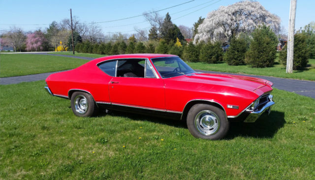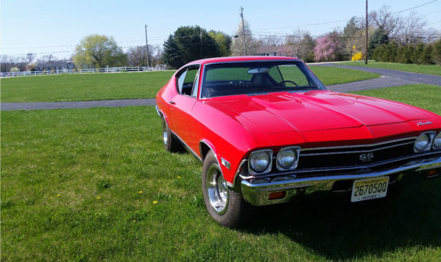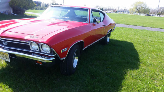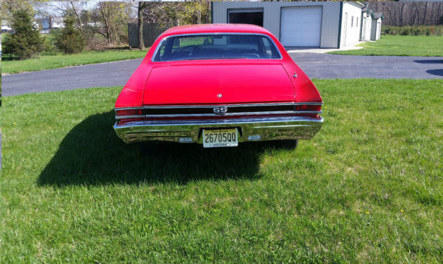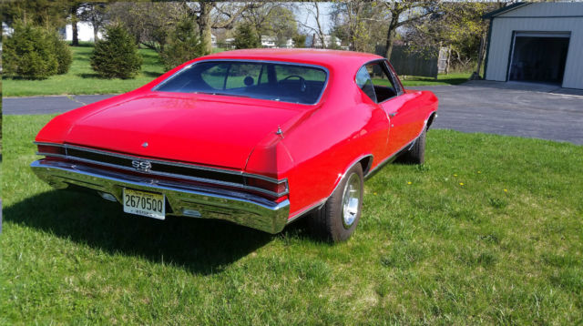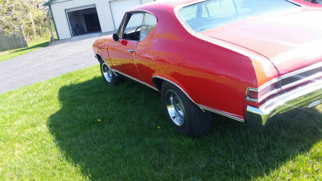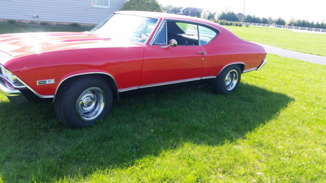 You're looking at factory SS 396 Chevelle 4 speed with console. The car is well maintained. The 396 has a 60 over bore with a roller cam and roller rockers. The heads are 225/188. The carburator is a Holley 830 dual feed double pump. The ignition an MSD which supplies superior spark for instant starts. The motor is pump gas friendly. The ceramic headers and exhaust are a year old. The motor runs perfect. Hp est. 550. The car is factory air, but the compressor and brackets are gone and could easily restored. The transmission is a numbers matching Muncie M21 and shift smoothly. A new clutch assembly was installed about a year ago. The brakes have had a full brake job about a year ago also. The car has drum brakes with power assist. The rear is a 373 12 bolt posi with limited slip that was also rebuilt with Richmond gears and a Yukon limited slip differential about a year ago. The body has all original panels no bondo or patch areas. The gas tank is new. The floor pans and trunk pans are solid. The paint is less than a year old, Torch Red, a beautiful base clear coat buffed to a nice shine. The car is straight. The body trim is is new as are the bumpers, rear light bezels and lenses, front park lights and lenses, reverse lamps and lenses, side markers and SS emblems and hood grille ornaments. The windshield and rear glass are new as are the trims. The interior has new carpet, new headliner, new dash pad and a new top console plate. There is Jensen sound system. The car shows well. The car is a nice older restoration that has been well maintained and has now had some great upgrades. Always garaged keep and not abused. Any question pleased ask. I have the car locally out for offers. The is no implied warranty and is sold as is.