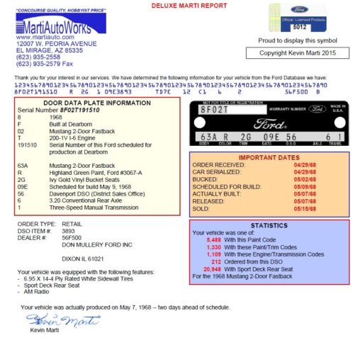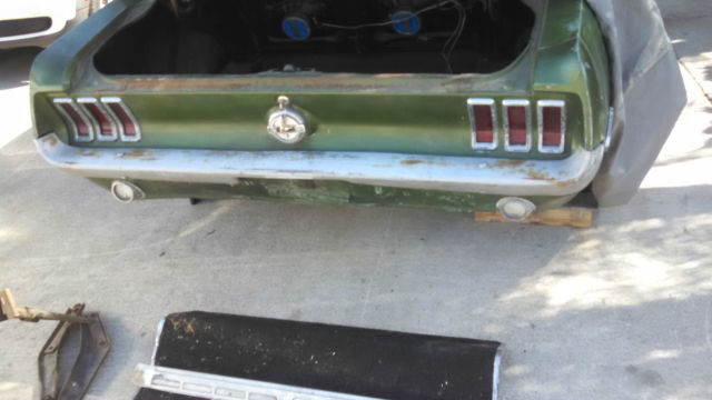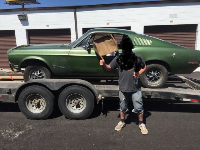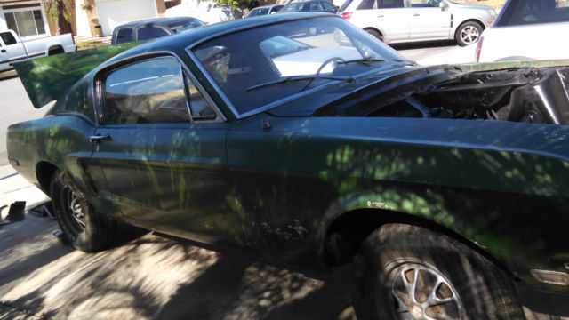 Here is a 1968 Ford Mustang Fastback 2+2. it is originally Highland Green, and was a I6. The car will need a restoration, and does not include an engine or transmission. They only made about 1,109 of these I6 with a 3 speed manual transmission, so in its own sense its pretty rare. the car rolls, and steers, and someone at one time has converted the wheels to 5 lug. the car has rust on the underside, and probably in other places i dont know about. This would make a sweet Bullitt , or Shelby GT500 clone. Condition: The car will need front, and rear frame rails, and floor patches installed. the trunk area looks good, and it will include the front seats, rear fold down seats and about 90% of the interior trim pieces. the outer rockers by the door will need to be patched, and the small lower corner of the doors will need to be patch as well "common on classic mustangs" I am moving, and i wont be able to haul it with me. great project car if you have the time, and money to work on it. i described the car as honestly as i can, and you are welcomed to do a visual inspection. thanks car will be SOLD AS IS.
