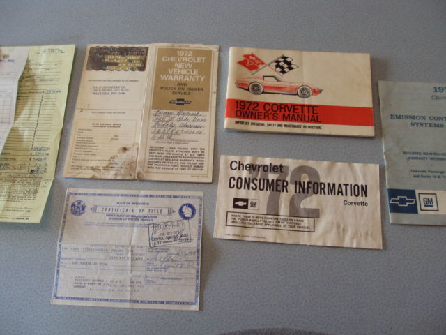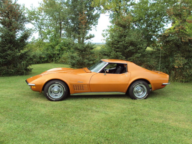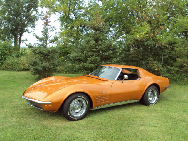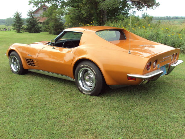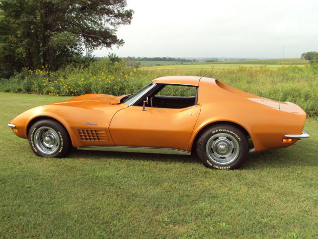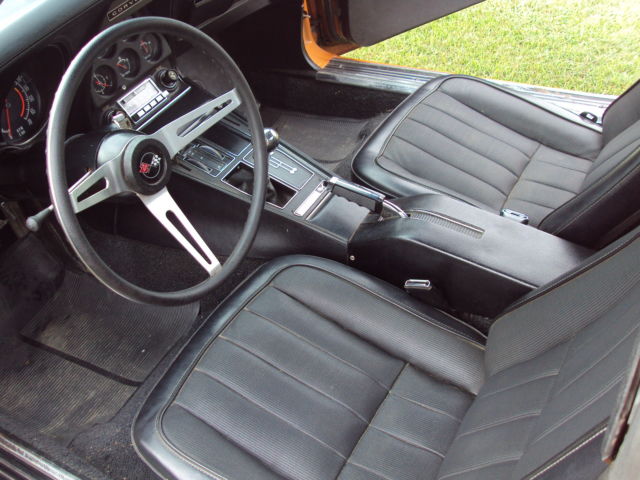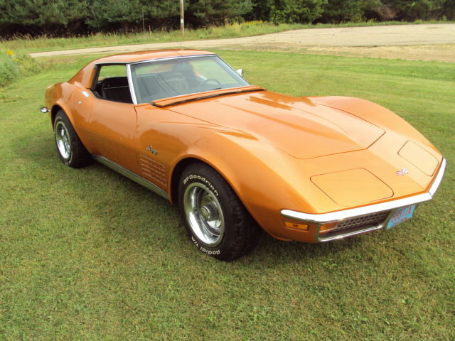 Up for sale is a matching numbers 1972 Corvette Coupe. This car is equipped with a 200 h.p. 350 cu motor, super T10 four speed, posi rear end and power steering. The car is sporting it's original Ontario orange paint.The original black interior is in excellent condition. The car has not been modified with the exception of shocks tires, and exhaust. The motor was also rebuilt and bored 30 over with new barring gaskets etc. Most of the components work properly headlights and vacuum system. Things that don't work that are original but not working are the radio, heater fan, wiper motor. Car runs and drives great! It has never been I an accident or has had any repairs done to the body. Frame has surface rust and from what I can tell has had one repair on the bottom of the passenger side as you can see in the pictures. Doors work great and bird cage is in great shape with no rust. Nice survivor car to restore or drive. Also included with this car is complete documentation of original one owner car . This car has low miles and low reserve! PS .If you DONT live in the lower 48 or in the( USA) DONT waste my time and all the other nice people here on ebay who are trying to do things the right way.