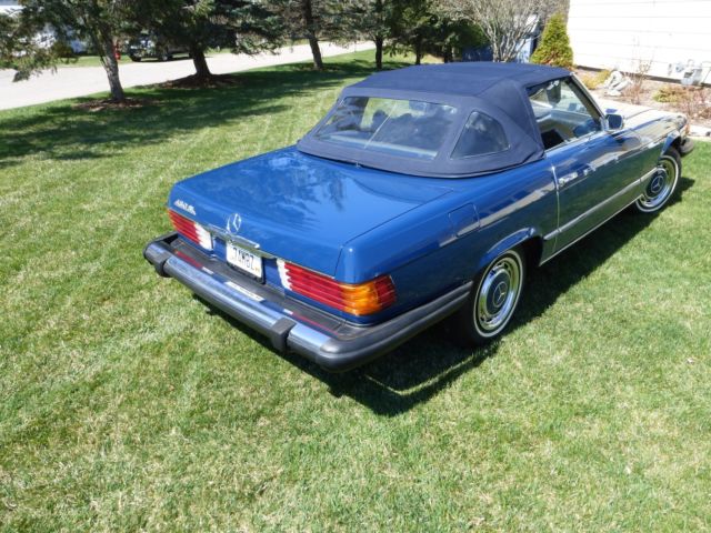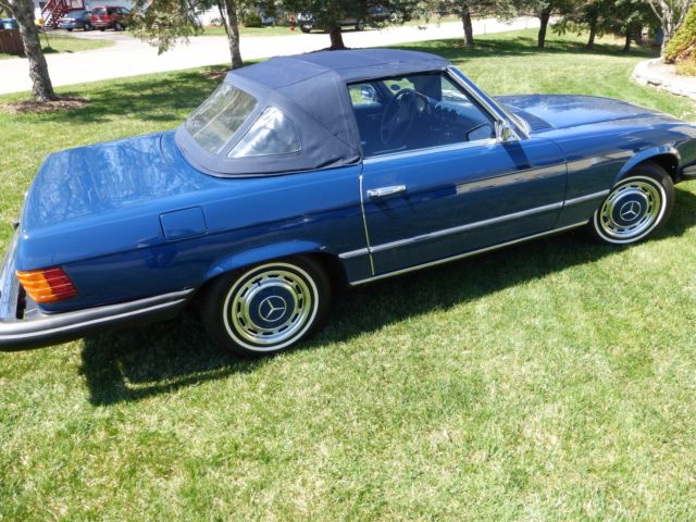 "MY FATHER-IN-LAW SURPRISED MY MOTHER-IN-LAW WITH THIS 1974 MERCEDES BENZ ROADSTER 450SL. IT WAS THE PRIVATE CAR OF THE OWNER OF THE MERCEDES DEALER IN TOWN AND WAS LESS THAN A YEAR OLD. SHE TOOK SUCH PRIDE IN HER NEW CAR THAT SHE NAMED HER BETSY. BETSY HAS NEVER BEEN IN SNOW BECAUSE MY FATHER-IN-LAW BUILT A SPECIAL GARAGE TO HOUSE HER DURING THE WINTER MONTHS. IN THE SUMMER MY MOTHER-IN-LAW CHOSE TO TAKE THE HARD TOP OFF AND PUT THE RAG TOP DOWN. THE EXTENT OF HER DRIVING WAS TO THE COUNTRY CLUB FOR GOLF, THE GROCERY STORE, CHURCH, AND CARD CLUB. ALL OF HER GRANDCHILDREN LOVED TO TAKE THEIR TURN WITH GRANDMA FOR A SPIN TO GET ICE CREAM. WHEN SHE PASSED AWAY, MY SISTER-IN-LAW INHERITED BETSY. SHE COULD NOT AFFORD THE UPKEEP AND INSURANCE ON HER, SO I BOUGHT HER FROM MY SISTER-IN-LAW. WHEN I BOUGHT HER I WENT TO THE EXPENSE OF HAVING A NEW TIMING BELT INSTALLED. I ALSO HAD HOSES, AIR FILTER, POINTS, ETC DONE AT THE SAME TIME. BETSY HAS HAD A TUNE UP EVERY YEAR FROM 1975 TO 2011. SHE IS EQUIPPED WITH AUTOMATIC TRANSMISSION, AIR CONDITIONING, HEAT, RADIO, 8-TRACK, AND RUNS WITH THE 450 ENGINE. I'M SURE IT TOOK MY MOTHER-IN-LAW NO TIME AT ALL TO GET FROM POINT A TO POINT Z. WE LIVE IN A SMALL TOWN AND THAT WAS ALWAYS THE JOKE! I SAW YOUR MOTHER-IN-LAW WHIPPING AROUND TOWN IN HER MERCEDES. I AM SAD TO GIVE HER UP, BUT I HAVE ONLY DRIVEN HER TWICE A YEAR TO A GOLF OUTING AND FAMILY REUNION. I HOPE SHE WILL FIND A HOME WITH ANOTHER FAMILY AND THE STORY WILL CONTINUE. THE ODOMETER STATES 68,923. IT STOPPED AROUND THE TIME MY MOTHER-IN-LAW FLUNKED HER DRIVERS TEST. OUR MECHANIC TOLD US IT WAS NOT OUT OF THE NORM FOE A ODOMETER TO STOP ON THESE MODELS, THOUGHT IT WAS FUNNY THAT IT STOPPED AT THE SAME TIME SHE STOPPED DRIVING HER BETSY!"  That's the ad that hooked me on this car in June of 2012. I'm sure I have driven it less than 500 miles since and it has been stored in a heated warehouse when not in use. I had  the Mercedes dealer in Madison go over the car in 2013 and spent $1,100 on upgrades.