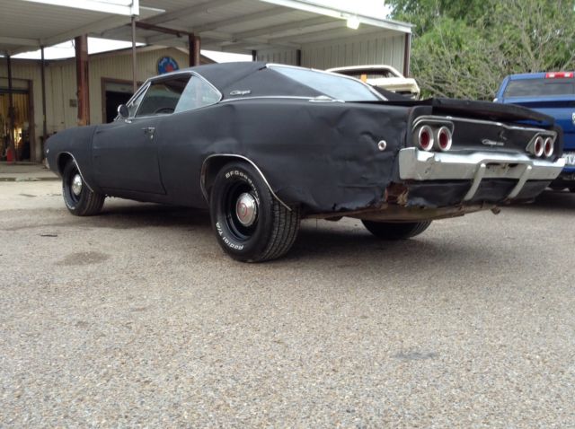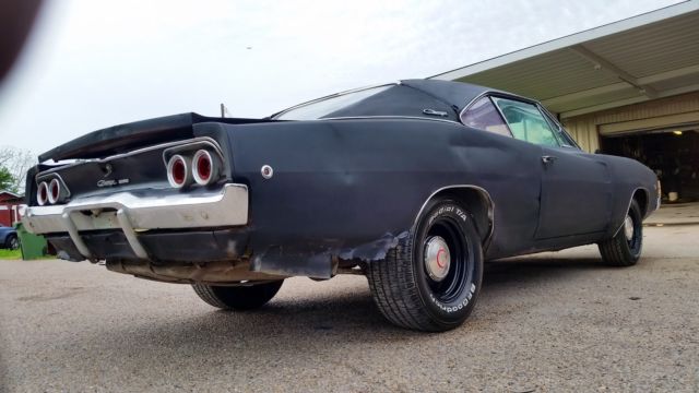 You are bidding on a 68 charger project that needs complete restoration or just install a new gas tank and sending unit, service the brakes and drive it . The structure of the car is 100 % solid. ( see pics ) solid frame , inner fenders, fire wall, torque boxes , door posts and rear frame rails . The driver and passenger floors are good but will need a few small patches but absolutely no floor replacement needed. Major items that need to be replaced will be quarter skin replacements (250 ea.from Sherman ) trunk floor (400 from Sherman ) and fuel tank with sending unit which you can find for under 200 bux. All trim is present and interior is mostly complete but missing rear seat bottom. The trunk gutters are perfect and so is the roof except at the quarter seam. The engine is the original 318 and it runs perfect. Good oil pressure and has a brand new carb, fuel pump, plugs and wires. The car starts and moves back and forward under its own power but I have not driven it due to the fuel being fed from a jug and the brakes needing service. It will drive on to a transport easily though. I have too many project right now and don't want to see this Mopar sit and wait. I do have a clear Texas bonded title and I will assist with your transport arrangements. Tires and wheels in the pics are not included in the sale but it will have rollers for transport duties. Bid to win. International bidders ok . 0 feedback bidder must contact me before bidding or bids will be canceled. Thanks for checking out my auction and I encourage you to ask questions if something is not clear. I have plenty more pics but ebay will only allow 24. The last pic is what the car Charger would look like if I restored it . All inquiries will be answered daily. Call or txt anytime before 10pm cst 956-821-4344