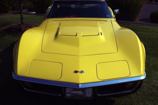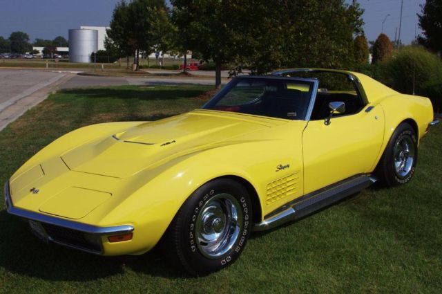 What I have here a drop dead beautiful unmolested 1970 corvette Ls5 4sp coupe. This car is a very nice example of an original 70 big block corvette . Owned many years by an NFL super star, the car was always pampered and well taken care of. The interior is what I believe to be all original and is in beautiful condition. The underside of car is original unrestored and is in great condition for being original. As you see car has the 69 side exhaust and that was added by the original owner in 1974/75 and I have the receipt from the Chevrolet dealer who done the work. Options include PS, tilt,tele,AM/FM, tinted glass, shoulder belts and with its original owners packet but missing is the POP. Have receipts to document the mileage. She was judged @ the NCRS and took 2nd flight with most points taken because of the side pipes but since they been on the car for most its life, they belong with the car. All Judging sheets go with the car. This car shows very well with a beautiful Daytona yellow paint and drop dead beautiful body with one repaint. I encourage all interested parties to send your expert out to view this car. It looks runs and drives like new. There are no warranties suggested or implied, car is sold as is where is. Shipping is also buyers expense. Would entertain trades for 68/69 original Z28 Camaros, 1966 Chevy original L79 Nova's.