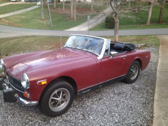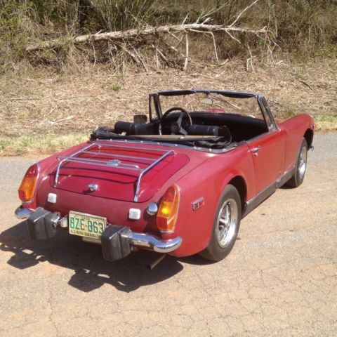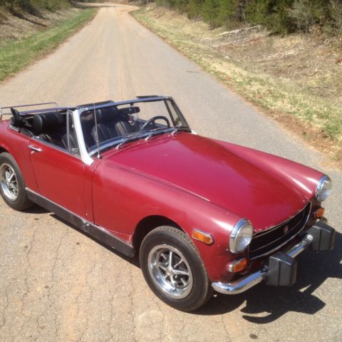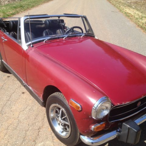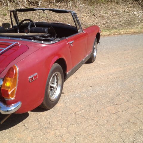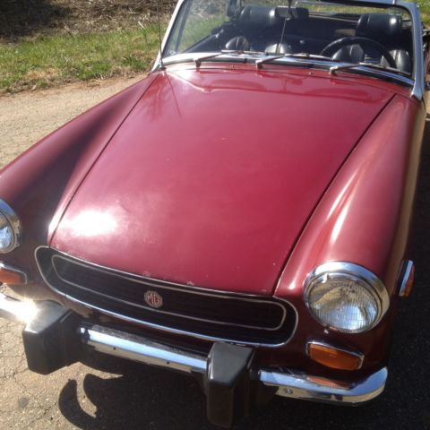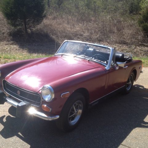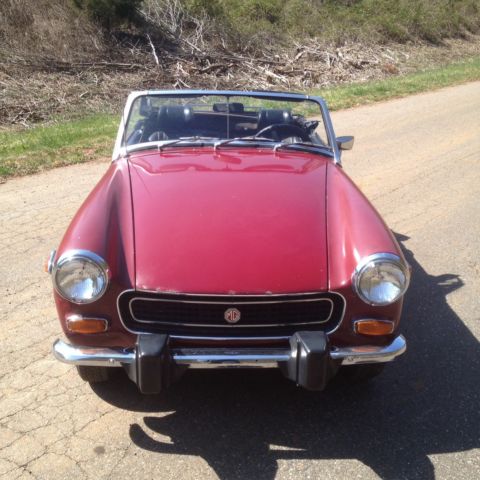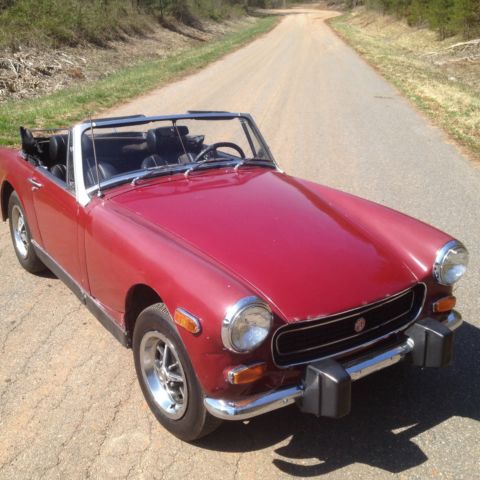MG Midget 1974. 1275cc and 4 speed transmission. Cat starts and runs great, smooth running, great oil pressure. No weird sounds or noises. Transmission shifts fine in all gears. Brakes seem fine and stops car well. Tires have decent tread. Interior is in excellent shape for 40 years old- no major rips or tears. Body work is fair to good. There are signs of rust in A post and sills. Floors and all major parts are rust free and in excellent condition. Paint has been touched up in a few spots and is starting to fade- again 40 year old paint.... Trunk floor is good and has spare tire and factory jacket/ tool kit. Soft top is torn at stitching. Electrically it's not bad. Turn signals are not working presently- fuse lasts about 1000 miles then blows. Is missing a switch or two. But a complete whole dash comes as a spare. Windshield also has bulls-eye, but a good used glass and frame comes with car. Rear shocks have dampness on them and will need repair - have a set of cores to send away .Many more parts comes with car including early bumpers. Car comes with a lot of paper work from perverse owner showing $6k in maintenance from about 1999 to about 2010. This car is not perfect, but is a great opportunity to buy a classic which is very usable and can be driven while carry out work. Inspections are welcomed. Car is located in Hickory NC. $500.00 deposit non-refundable at purchase. Cash balance paid at pick up. Car sold as is. No warranty Pick up only. No shipping. Car being sold with information best to my knowledge- feel free to ask for questions or more detailed pics Contact ; Ben cell# 702 266 0828.