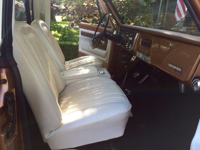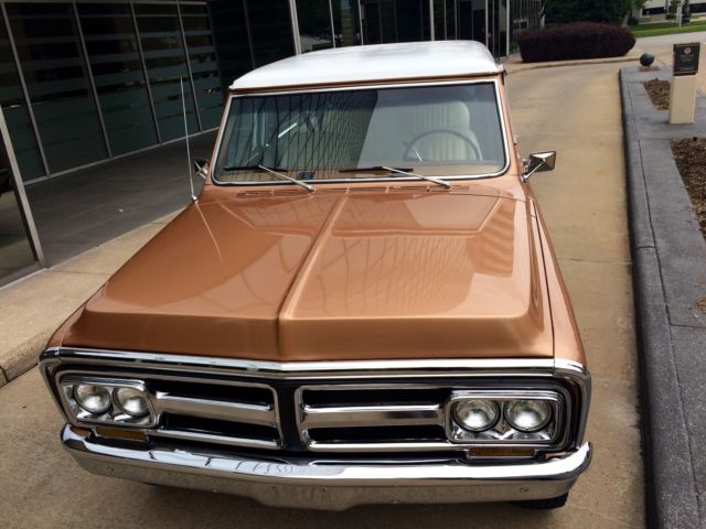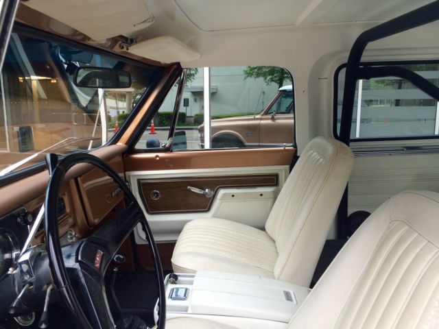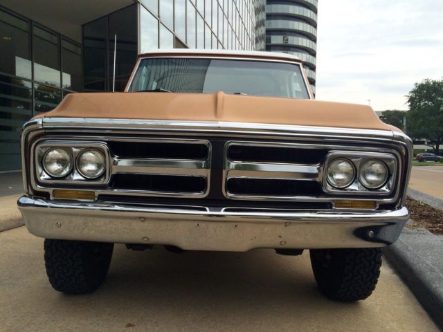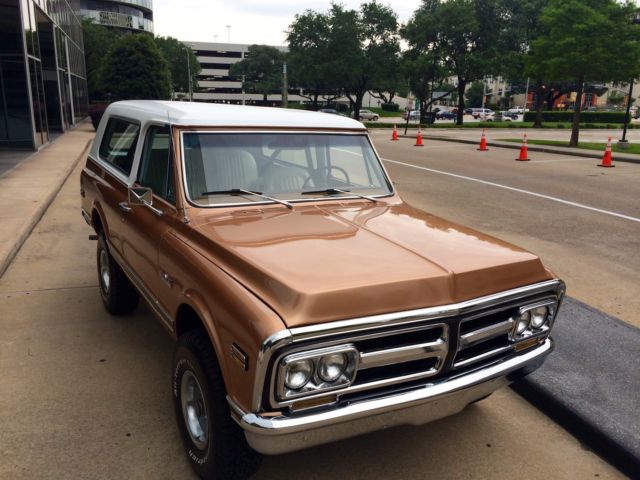 1972 GMC Jimmy This is the one you have been waiting to find. A great opportunity to acquire a great American classic. Please make sure to view over 100 photos here: https://www.dropbox.com/sh/3yvpudcthxlin6n/AAAnEArxVzDGLre3YC-Evj53a?dl=0 Tinted glass Front wheel lock Rebuilt Turbo Hydra-Matic Full wheel covers Removable top-white Medium bronze Original 4 Season Air Conditioning (vents are there but will need new system) Rebuilt 350 CID V-8 Engine Power steering Power brakes Cheyenne Package Parchment Interior It is a rotisserie frame off restoration; please make sure to review all Dropbox photos of the restoration. The body was blasted down to bare metal, Painted correct Copper Poly PPG paint (Medium Bronze) and 3 coats of clear, It was then color sanded and buffed for a show quality finish. The underneath and interior of the body were also completely primed and painted. It has all new weather striping on entire vehicle, new lower trim, new lens, new emblems, new tailgate band. Underneath the frame was undercoated and painted, front and rear axles painted in chassis black. It has a new gas tank, brakes, u-joints, and bearing were inspected and serviced. Engine, transmission, carburetor, and distributor. New fuel pump and tune up. The exhaust is older with glass pack exhaust and and new tailpipes. The interior has new carpet, dash pad, instrument cluster bezel, and some new miscellaneous pieces as needed. The seats are mainly original and look good. The door panels and side panels, and console also look good; they are not perfect but very respectable. There is a new windshield. Side and rear glass in top, and door glass are in like new shape. Both window regulators are new. It has near new tires and newer style GM rally wheels including a spare tire. Qualified prospective buyers with serious interest, please contact me at 713.444.5088. Thanks, Charles I reserve the right to end this listing at any time as vehicle is for sale locally.