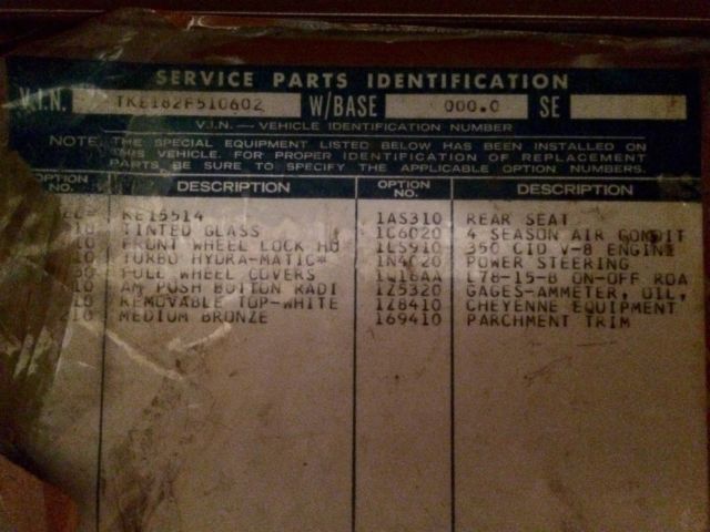 | VIN (Vehicle Identification Number): | PKE182F510602 | Year: | 1972 |