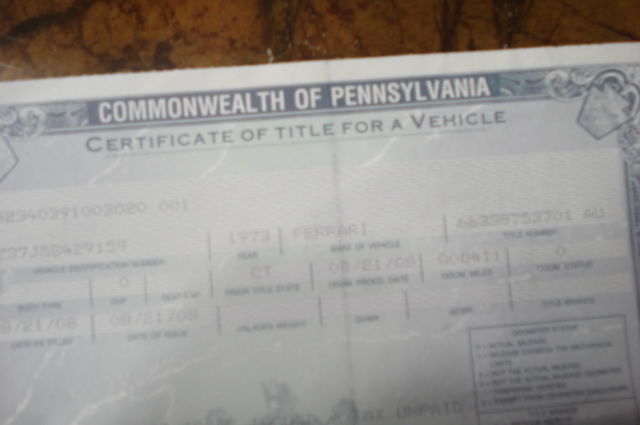 1973 Ferrari Daytona replica with matching year and with Title also listed as Ferrari!  Body by Tom McBurnie Very fast car and a pleasure to drive the 350 engine power is still like new with only 8 thousand miles no oil leaking no oil burning,  also the transmission has no oil leaking and shifts smooth and perfect through all the gears.  All gauges and all the electric work as should.  Recently replaced all brake calipers, master cylinder, all brake pads, new clutch and all of the muffler from front to rear along with all fluid changed . The Ferrari rosso paint shines great,  car has front and rear Carrello light the chassis on this car is clean and rust free!  Console and doors panels need to be dressed to be perfect  i have local interior person estimate $2,400 to do the console both front seat and both doors panels vinyl match lather black with red stripe but i dont have time, car also could use tires was seat since 2008 Well she is worth $40k finish or ready to enjoy as is not necessary to do anything.  This one was built in 1988, first owner was in California the second in Connecticut and the third in Pennsylvania, look at the title picture, only a few of the early productions were titled and registered as Ferrari .