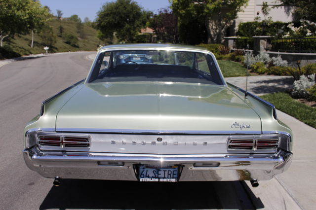 Iconic and classic mid-sixties Detroit muscle and style. Selling my beautifully restored 1964 Oldsmobile Starfire. This is a rare car and very few remain, even fewer restored to this level. This car was stored for many years in Illinois farm country and was sold to me as a 44,000 mile original. It has less than 4000 miles since restoration. I spared no expense in restoring the interior, mechanics, and exterior to original condition. Everything that needed to be done has been done to a high level. Car runs smoothly and strong. I have all restoration records and invested over $40,000 into the process. Appraised value is $35,000. Priced fairly for quick sale. My loss is your gain. Some Highlights include Factory Original "Heather Mist" (light green metallic) paint, complete engine and transmission rebuild, all new suspension components. brakes, Magnaflow exhaust system (great rumble). etc...etc...etc. Interior carpeting is original with original inserts and in great condition. New light green headliner, seats redone with Connelley leather (best color match to orginal vinyl color restorer could find) by Rolls Royce Interior restoration specialist. Expensive and turned out beautifully. New trunk liner and pad, Recent work includes power brake booster rebuild (should now last for another 50 years). Upcoming service this week will include replacement of fuel pump, carb adjustment, and starter motor and solonoid replacement. If you have any further questions or want some more vehicle history, please call Ed @ 949-709-7998. Western time zone. I am selling the car locally and reserve the right to cancel this listing at any time